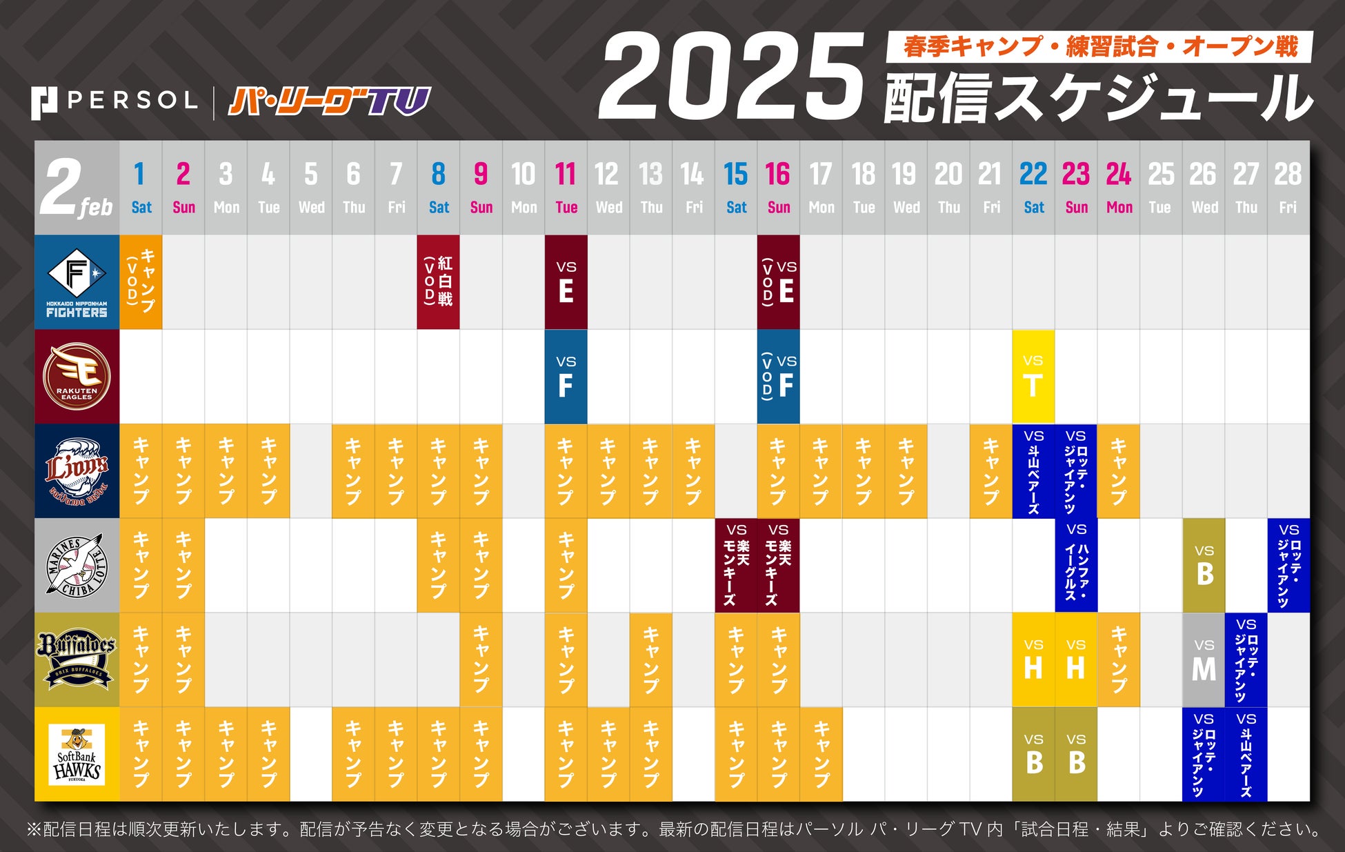 いよいよキャンプイン!2月1日(土)からパーソル パ・リーグTVでは春季キャンプ、練習試合、オープン戦の配信を開始いたします。リニューアルしたパーソル パ・リーグTVで、今シーズンのプロ野球もぜひお楽しみください!
