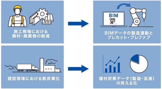 社会を支える建設産業の一員である私どもが、業界から排出される廃材量やCO2の削減、生産性向上による働き方改革を実現し、サステナブルに成長していく未来の実現を目指します。