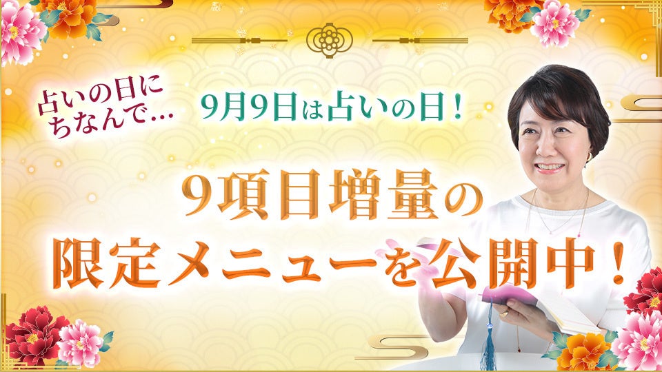 ■9月9日世界占いの日を記念し、人気占い師の鑑定を、9項目増量してご提供