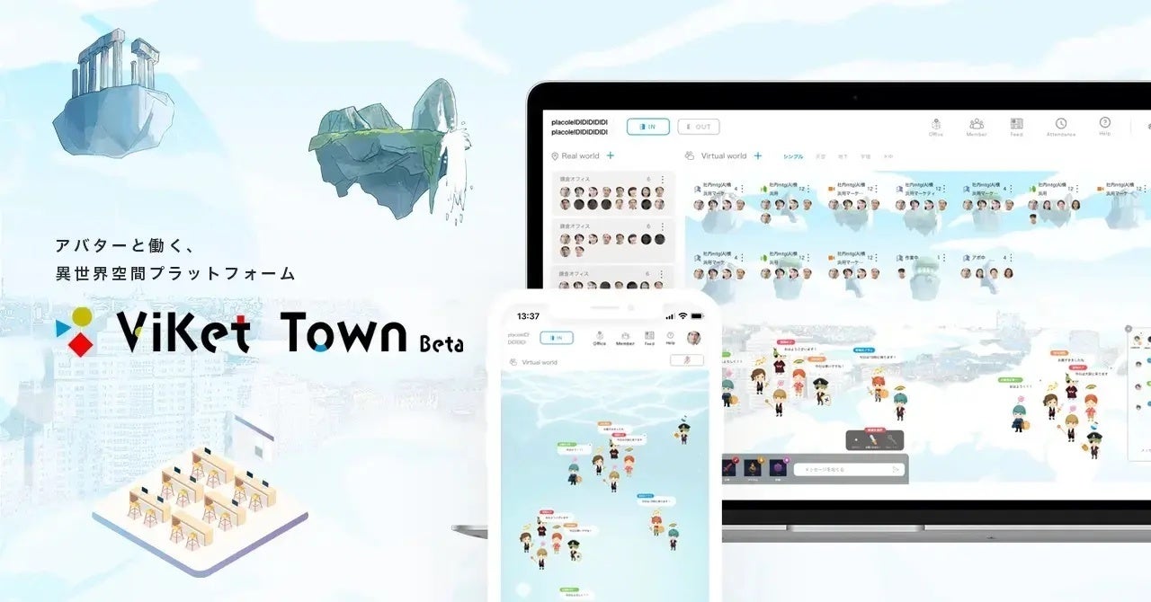 「ViKet Town(ビケットタウン)β版」では、水中、宇宙、天空など様々な異世界空間にアバターを転送することで仕事を始めます。非日常感を感じながらワクワクする毎日をスタートすることができ、世界中からあつまるアバターたちの「おはよう」は、孤独感もなく、チームの一体感も生まれます。 世界中の仲間達と同じ空間で働いている環境は、通勤時間や居住場所の制限がないため、人生の選択肢がふえる働き方を可能としています。