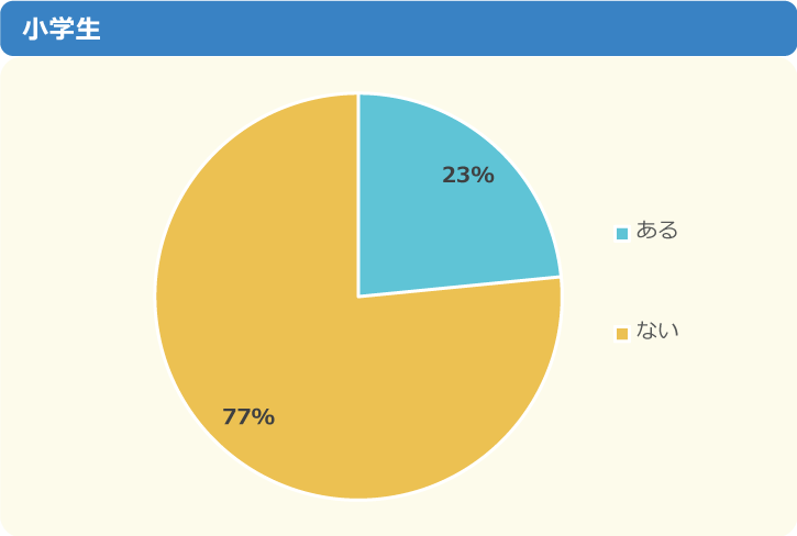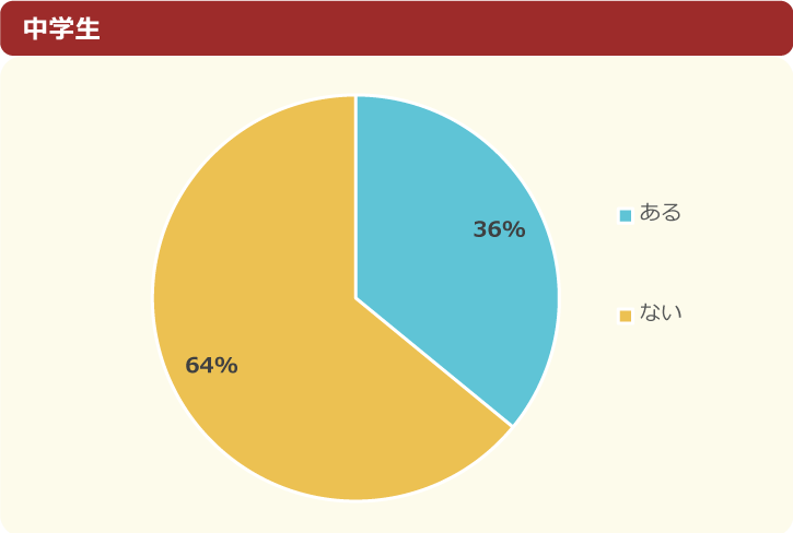 いやだな~と思うような出来事が「ある」と答えた人は、全体の28%でした。小学生では23%で中学生は36%と、中学生になると増加することがわかります。