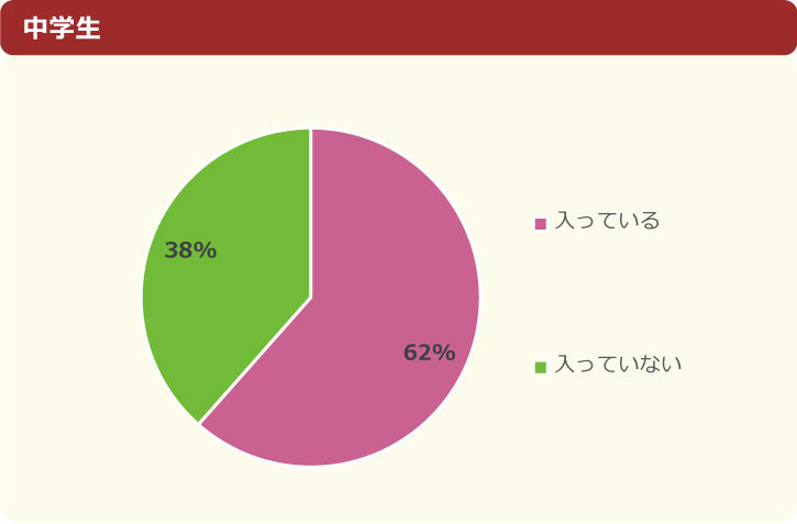 グループチャットに「入っている」と回答した人は小学生は35%なのに対し、中学生は62%と半数以上の人がグループチャットに入っていることがわかりました。