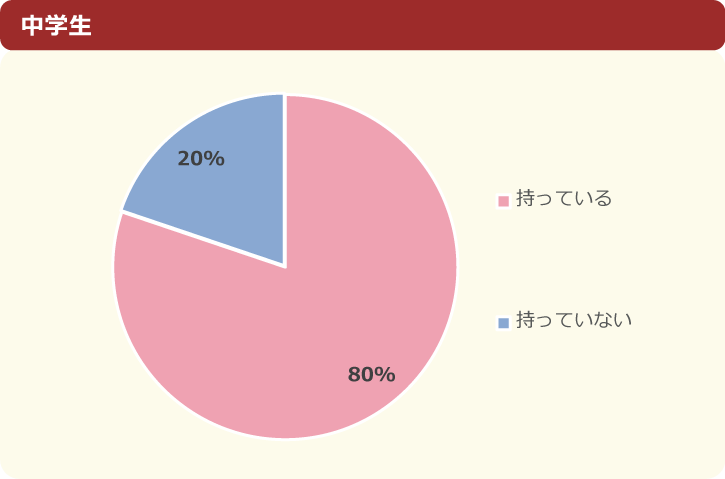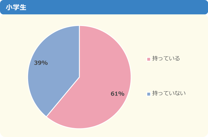 約7割が「持っている」と回答しました。小学生では約6割の人が所持していますが、中学生になるとPC、スマホ、タブレットなどを持ち始める人がさらに増えるようです。