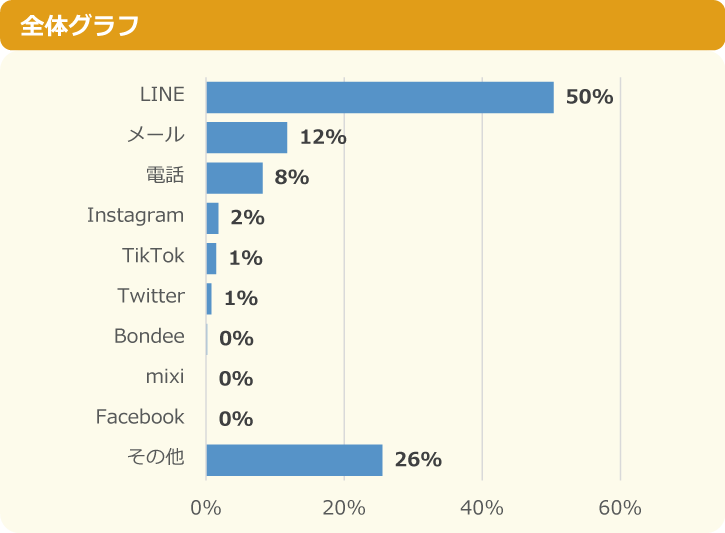 一番よく使われているのは「LINE」で、全体の半数を占めていました。小学生は「LINE」の割合が42%と中学生に比べて少ない結果となりました。