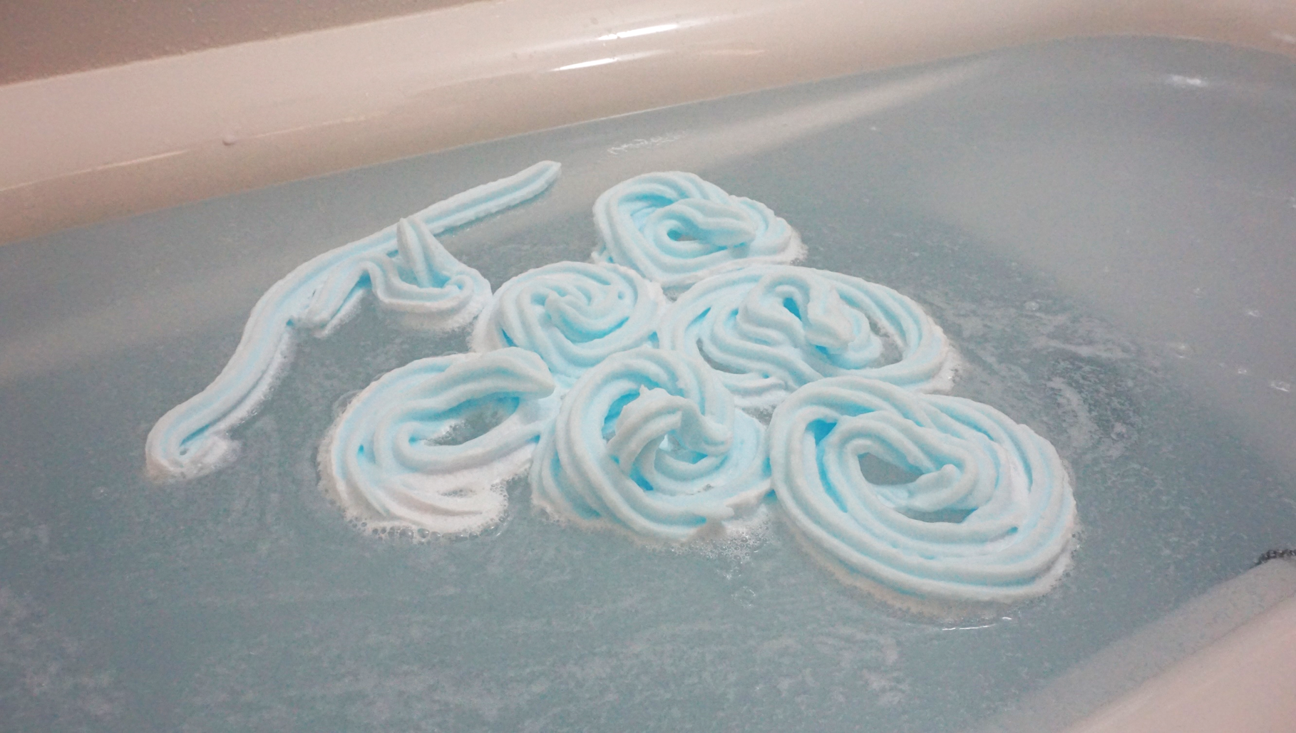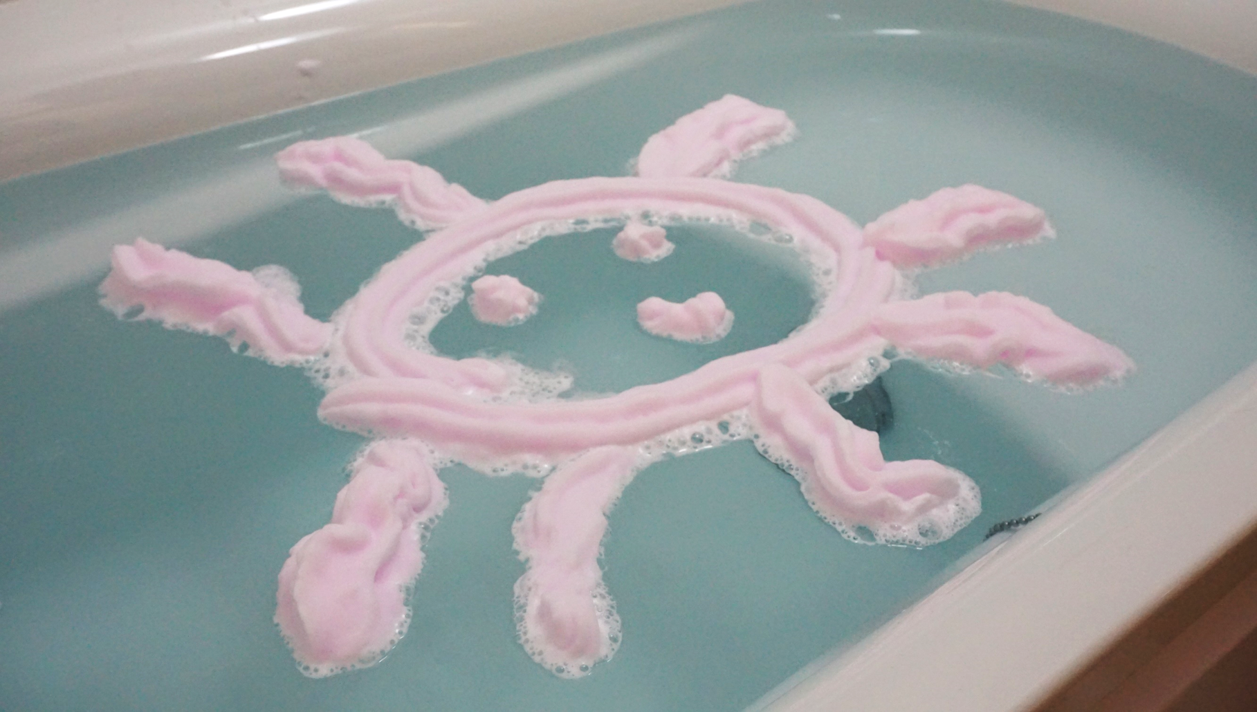 1.“ふわふわ泡”で湯面にお絵かきしたり、自由自在にいろんな形をつくって遊んで楽しめる!