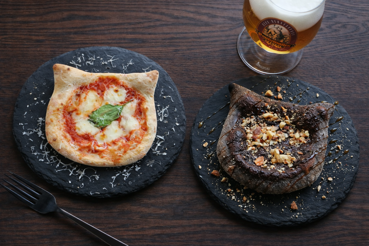 猫型マルゲリータ「“にゃ”ルゲリータ」と、黒猫をイメージしたデザートピザ「チョコ“にゃ”ッツ」の2種類を提供しています。