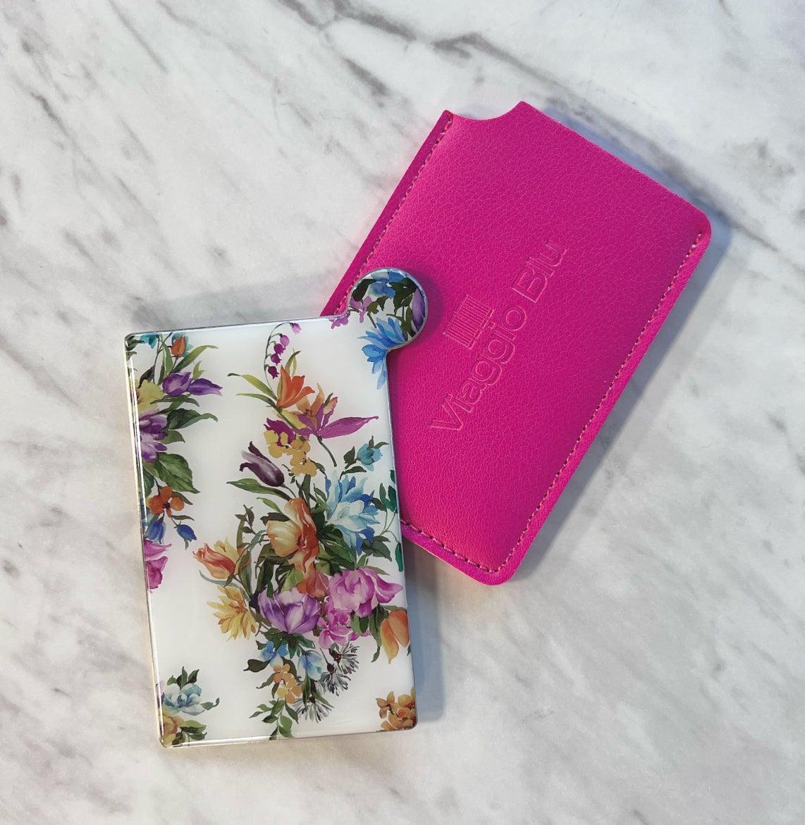 ビアッジョブルーのオリジナルプリントシリーズより「フラワーブーケ柄」を使用したコンパクトミラーをご用意しました。3月6日(金)より開催のスプリングフェアにて、55,000円(税込)以上お買い上げの方へ数量限定でプレゼントいたします。