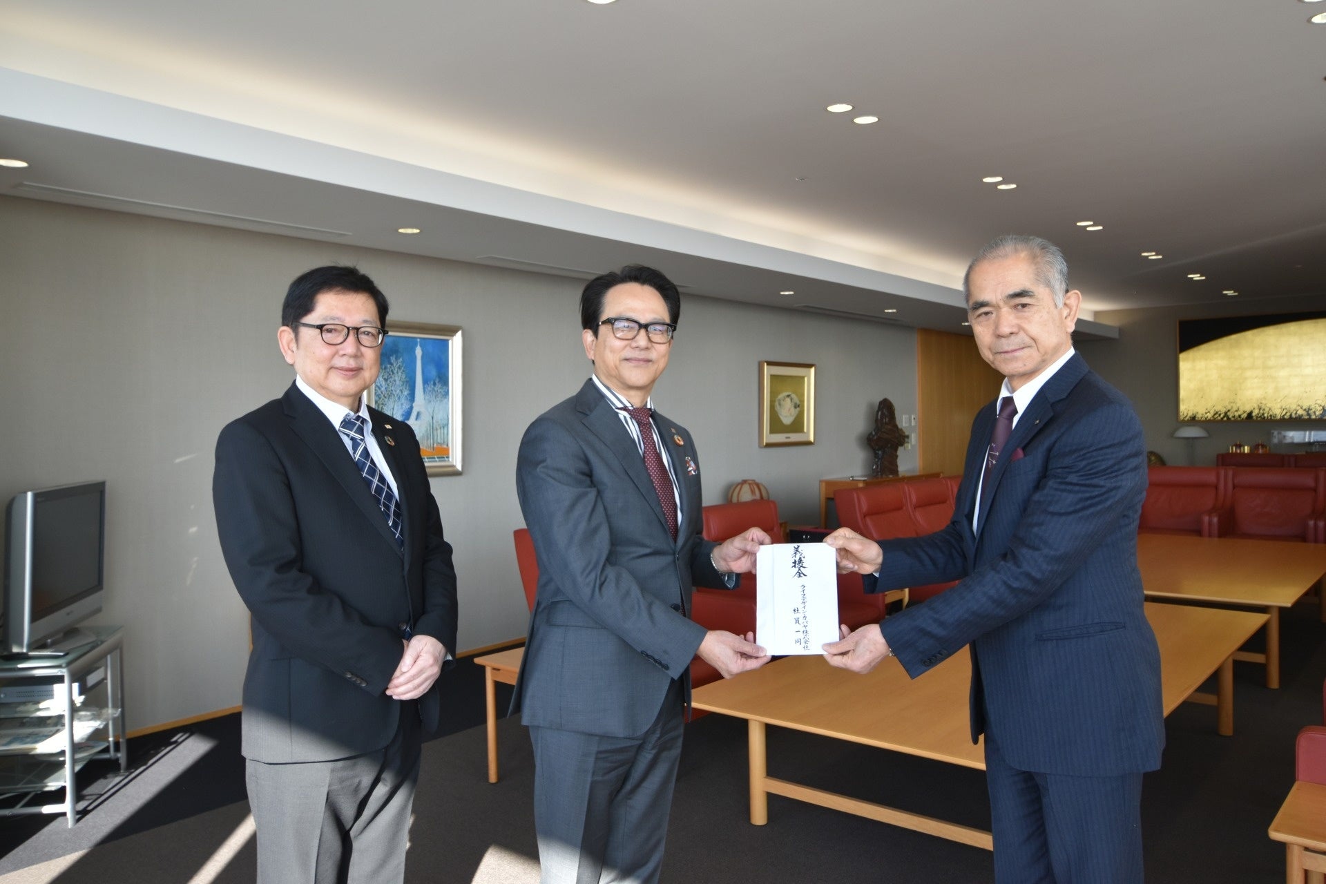 令和6年2月9日(金)山陽新聞社(代表取締役社長:松田正己/本社:岡山県岡山市)にて、山陽新聞社会事業団(理事長:松田正己)へ目録を直接お渡ししました。