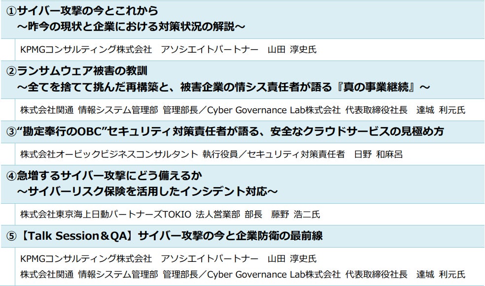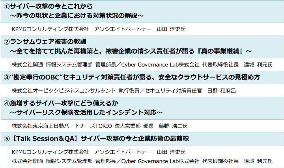 本イベントでは、こうしたサイバー攻撃の脅威の現実を正しく知り、「事業を止めないために、何を備えるべきか」を考える場として開催いたします。