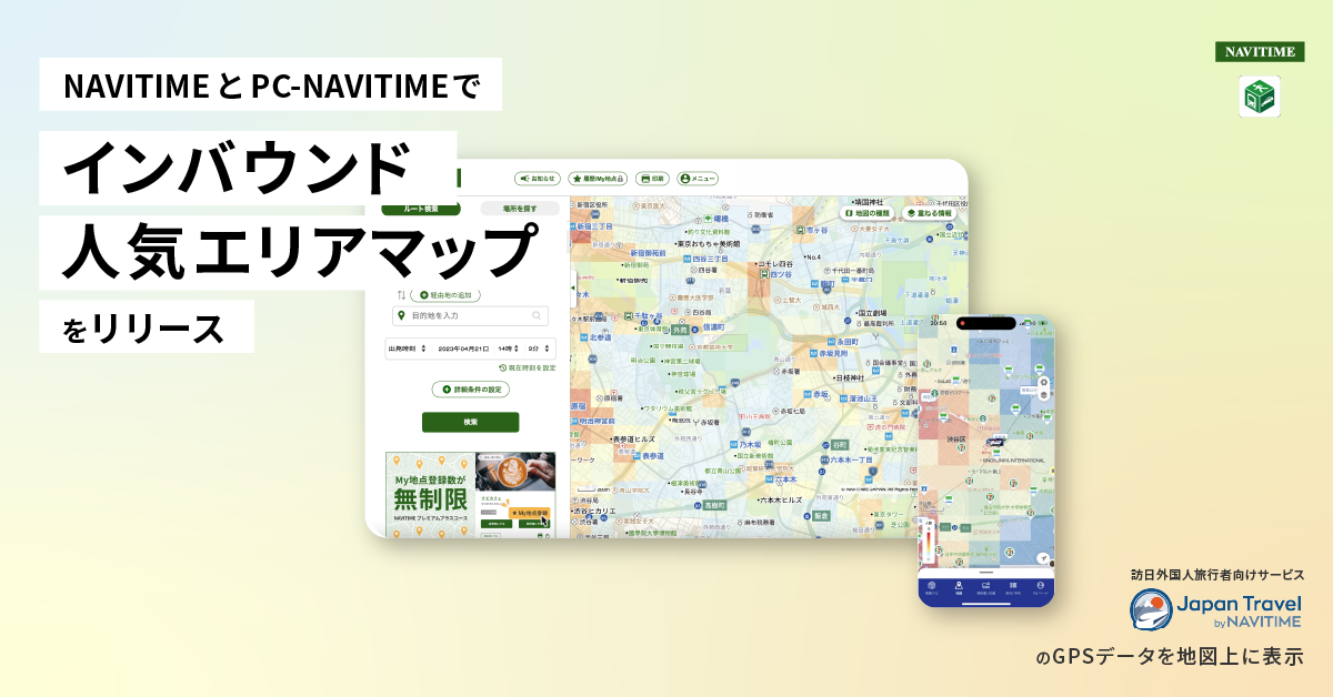 ナビタイムジャパンでは、企業や官公庁、自治体向けに訪日外国人の旅行動態をより詳細にWebで分析できるツール『インバウンドプロファイラー』や、日本の観光情報を検索している旅マエの訪日外国人旅行者や、旅ナカの旅行者に対して経路検索や位置情報に応じた情報配信を行える広告プロモーションメニューを提供しています。