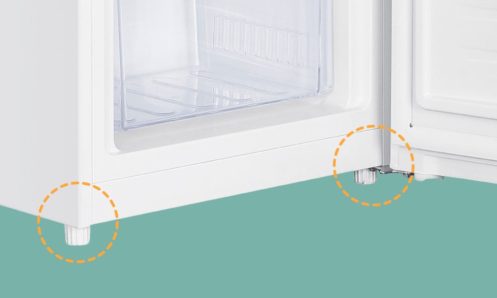 本体底面に取り付けられている調節脚によって、高さを調節して本体を水平に調整することができるので、底面の設置面積が減少し、床へのダメージを防止いたします。
