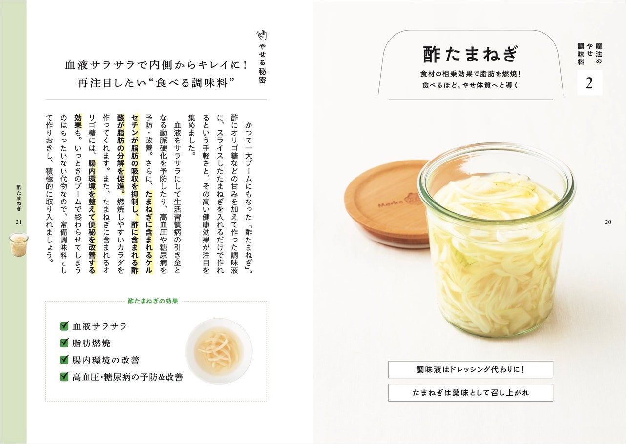 本書では、やせ調味料を使った42品の食べ方&アレンジレシピを収録。