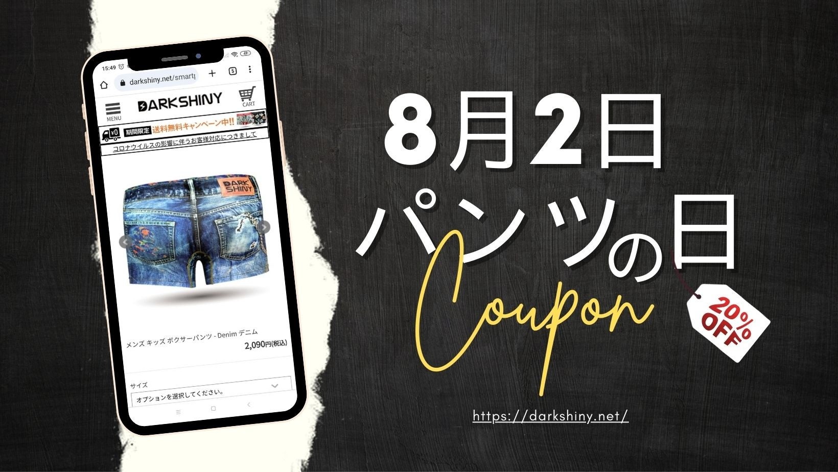 8月2日はパンツの日!!DARK SHINYのボクサーパンツが20%OFFになる特別クーポンを配布