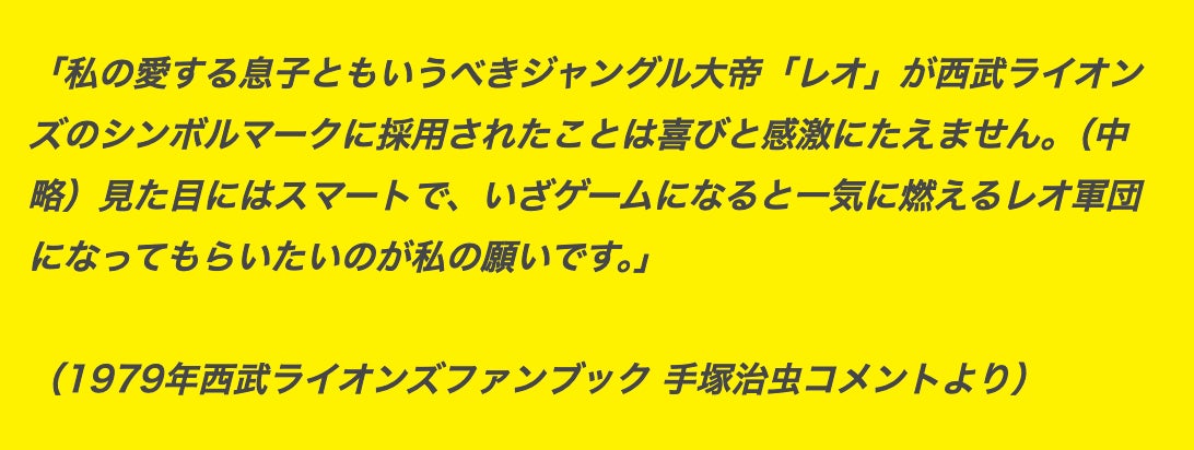 自然と人、強さと優しさ。時代を超えて読み継がれてきたテーマは、野球の世界にもつながりました。1979年、西武ライオンズの球団マークに選ばれたのは、まさにこのレオ。