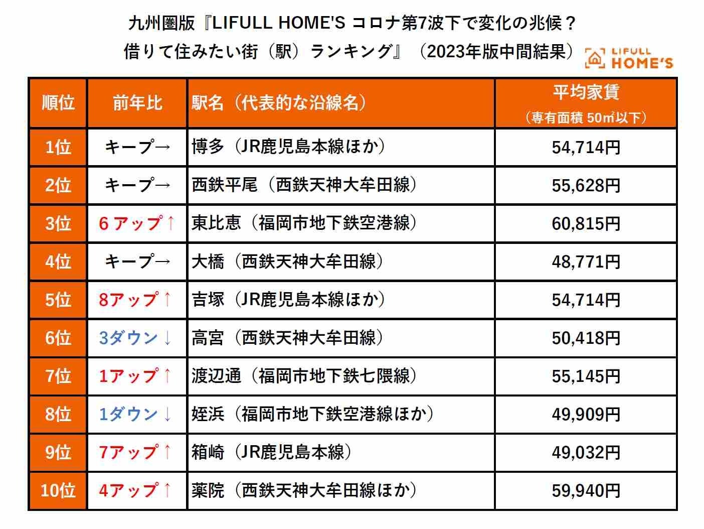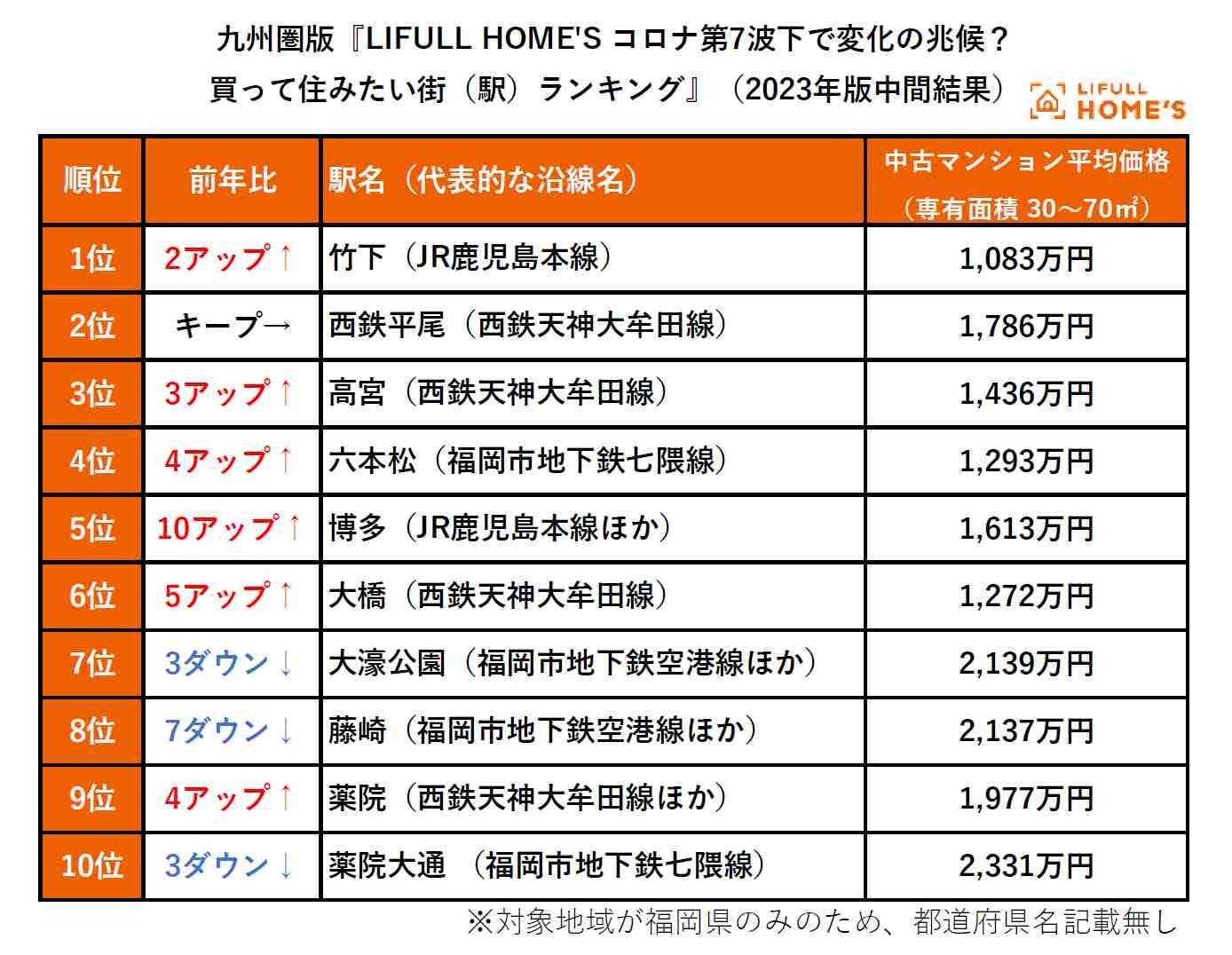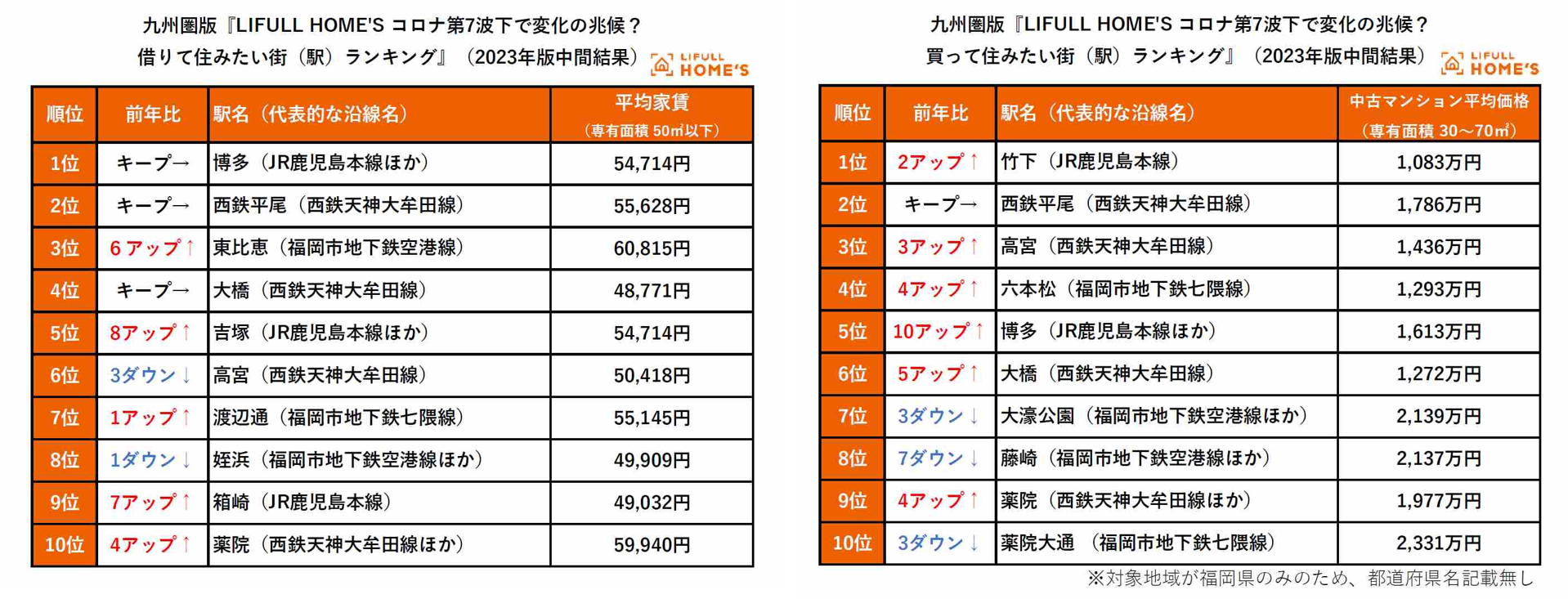 - 九州圏版「住みたい街ランキング」中間結果 詳細:https://www.homes.co.jp/cont/data/corona_s_ranking_2023_kyushu/