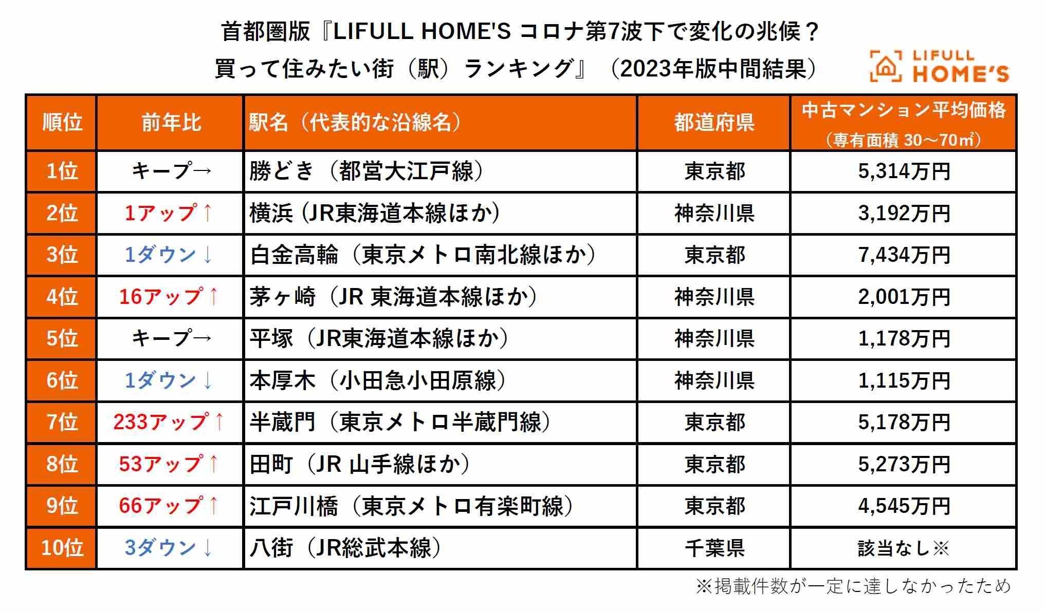 『LIFULL HOME'S コロナ第7波下で変化の兆候?住みたい街ランキング』(2023年版中間結果)