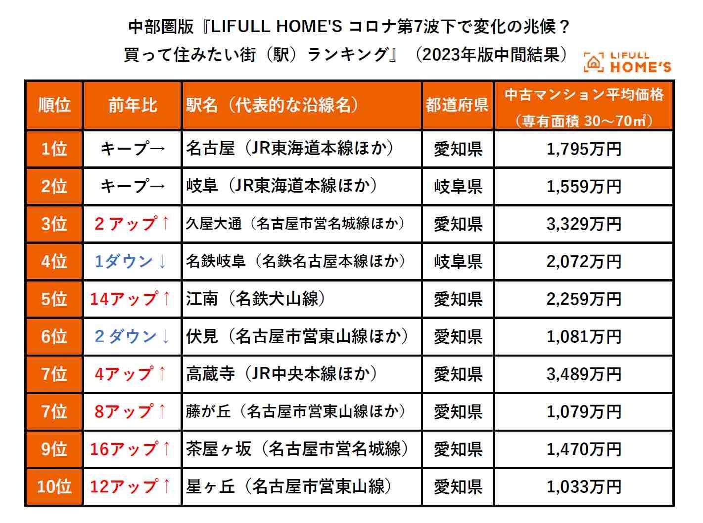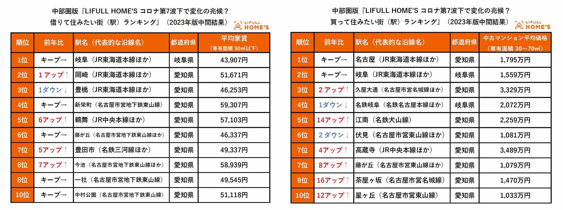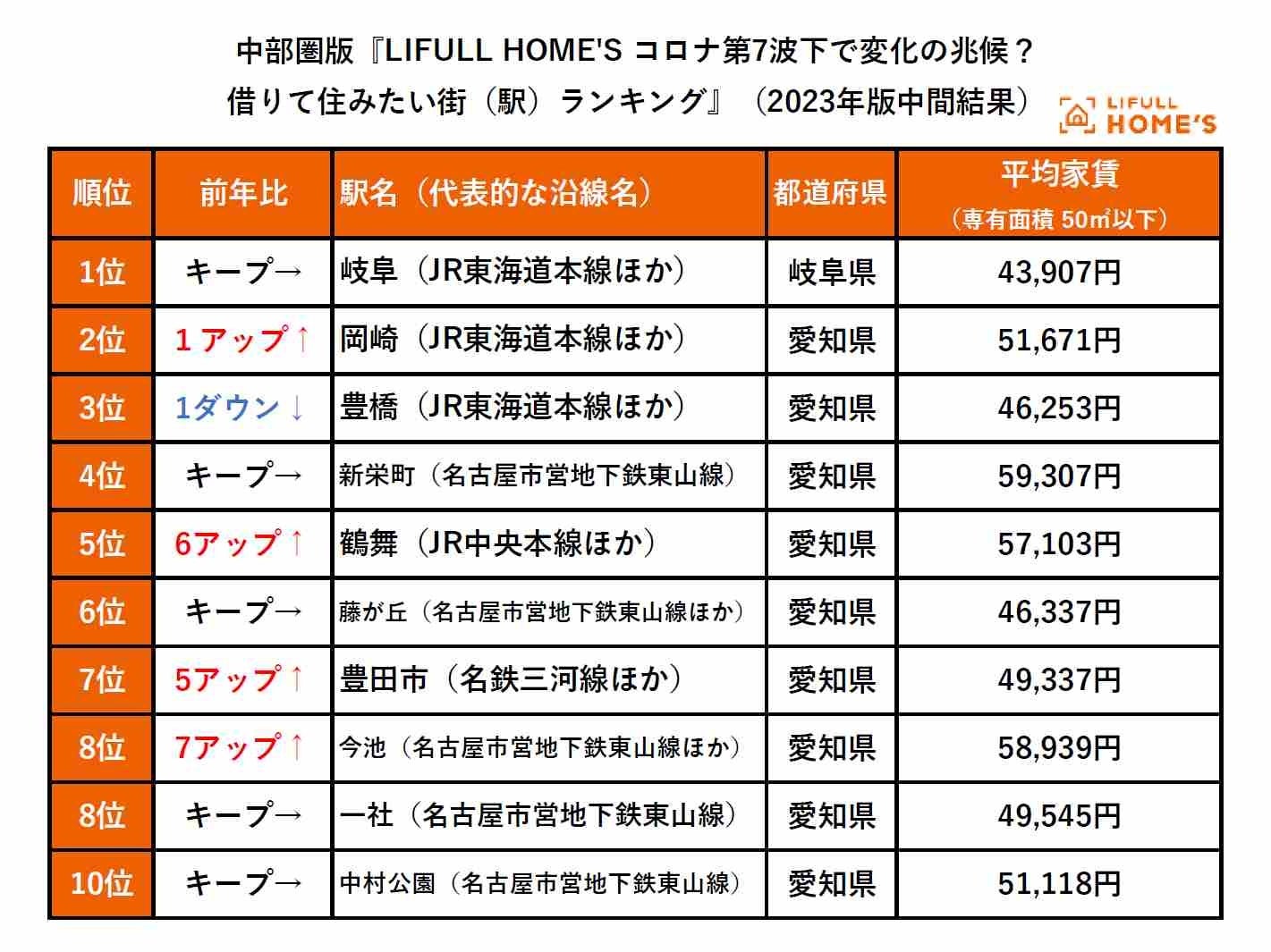 - 中部圏版「住みたい街ランキング」中間結果 詳細: https://www.homes.co.jp/cont/data/corona_s_ranking_2023_chubu/