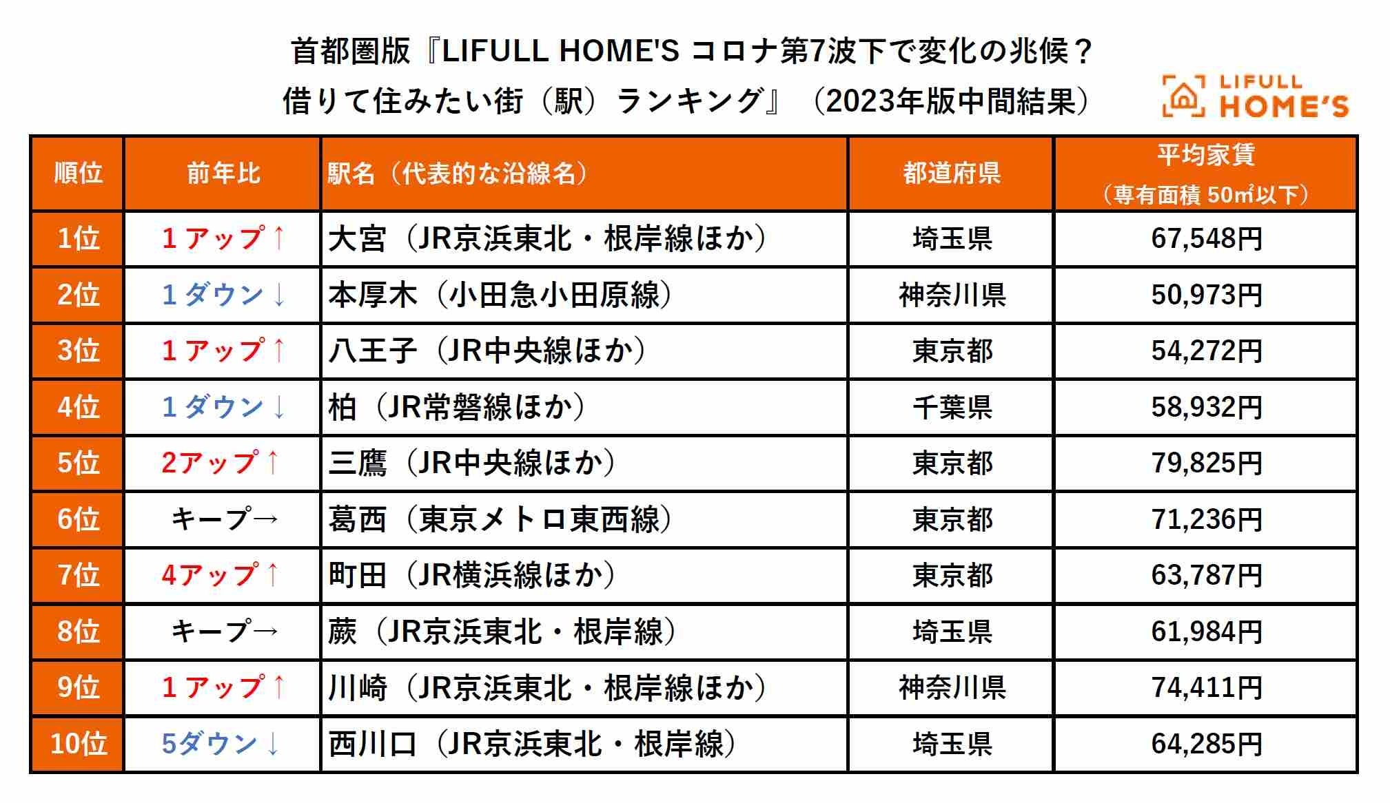 首都圏版「借りて住みたい街」ランキング中間結果 詳細:https://www.homes.co.jp/cont/data/corona_s_ranking_2023_shutoken/