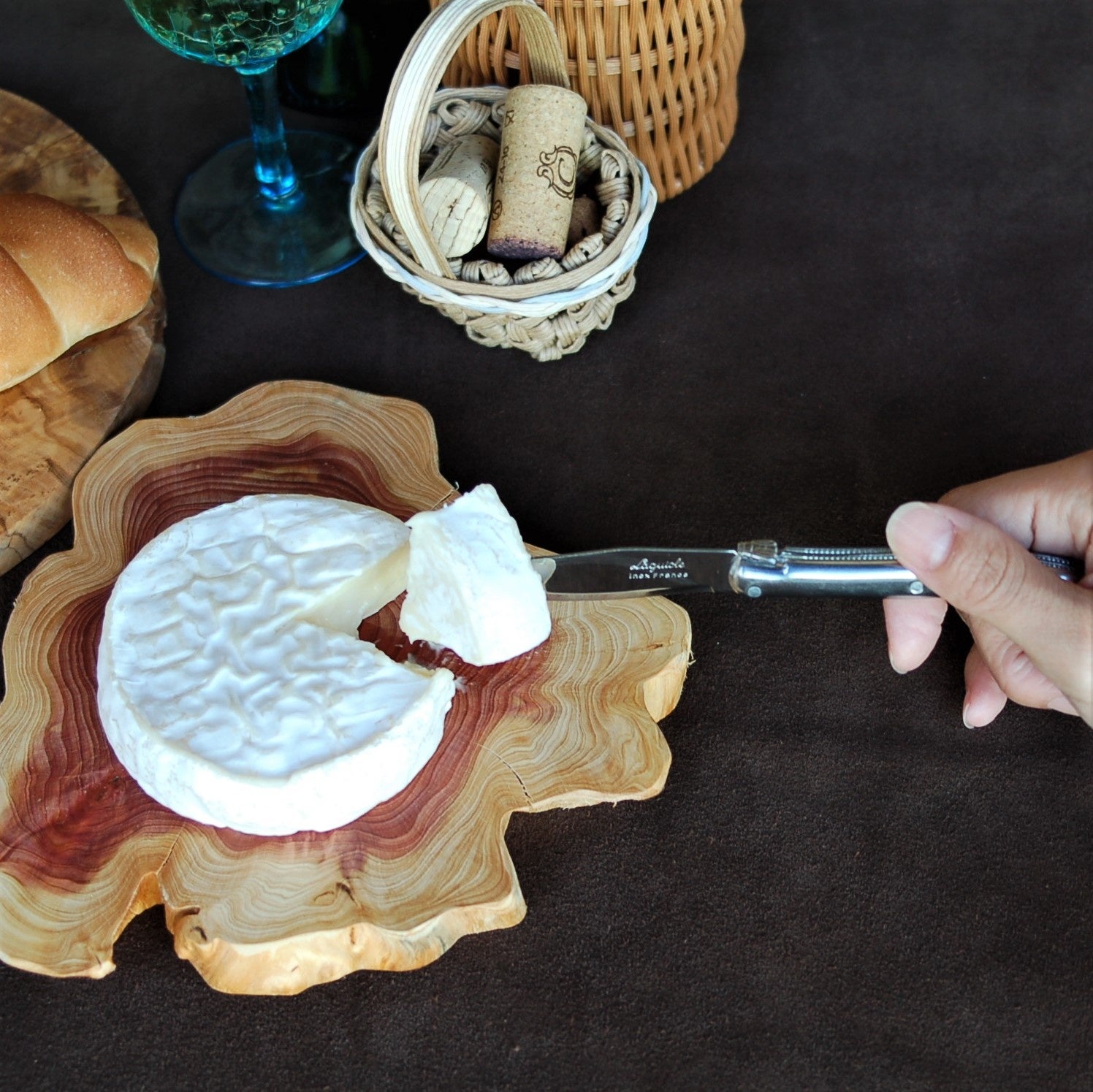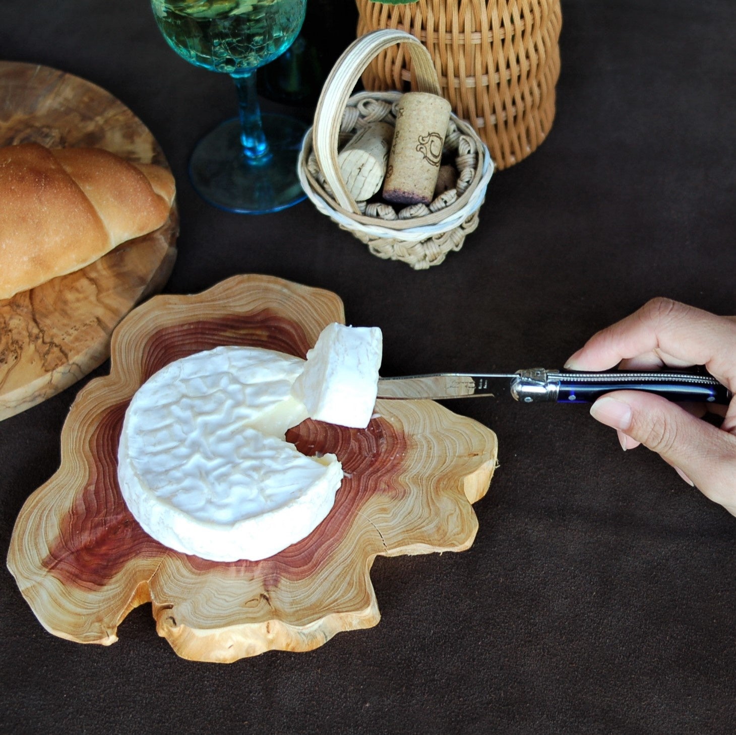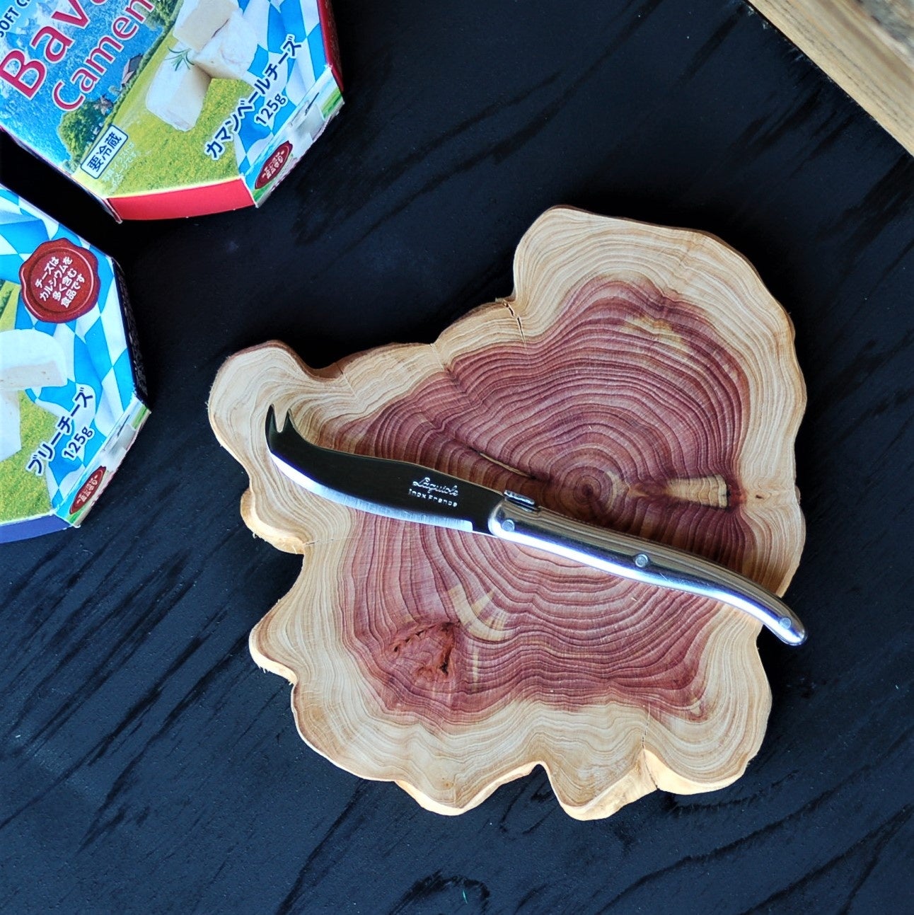 天然の造形と木目、香りを同時に楽しめる紀伊半島産イブキ材プレートと人気のミニ・チーズナイフをセットにしました