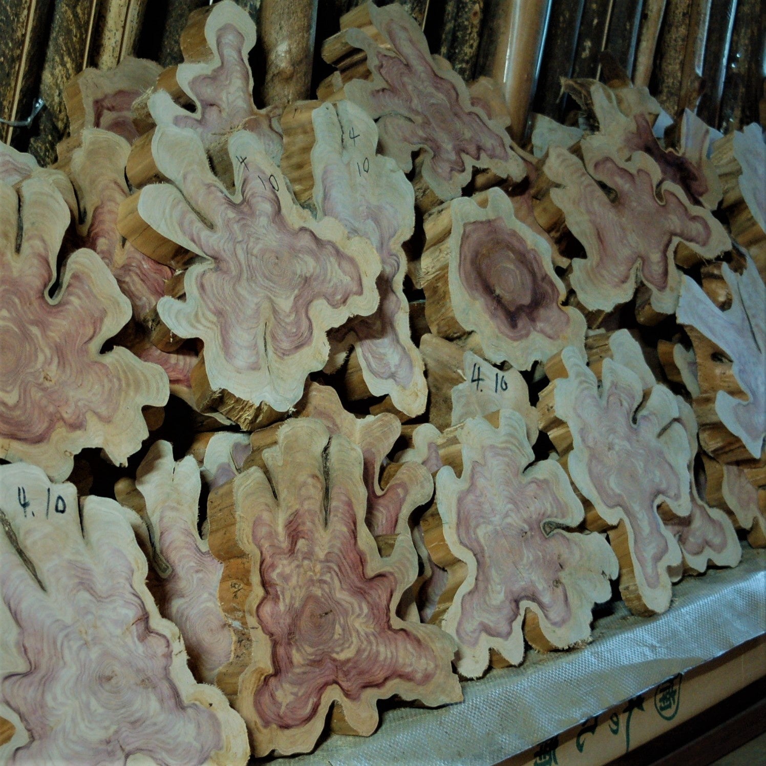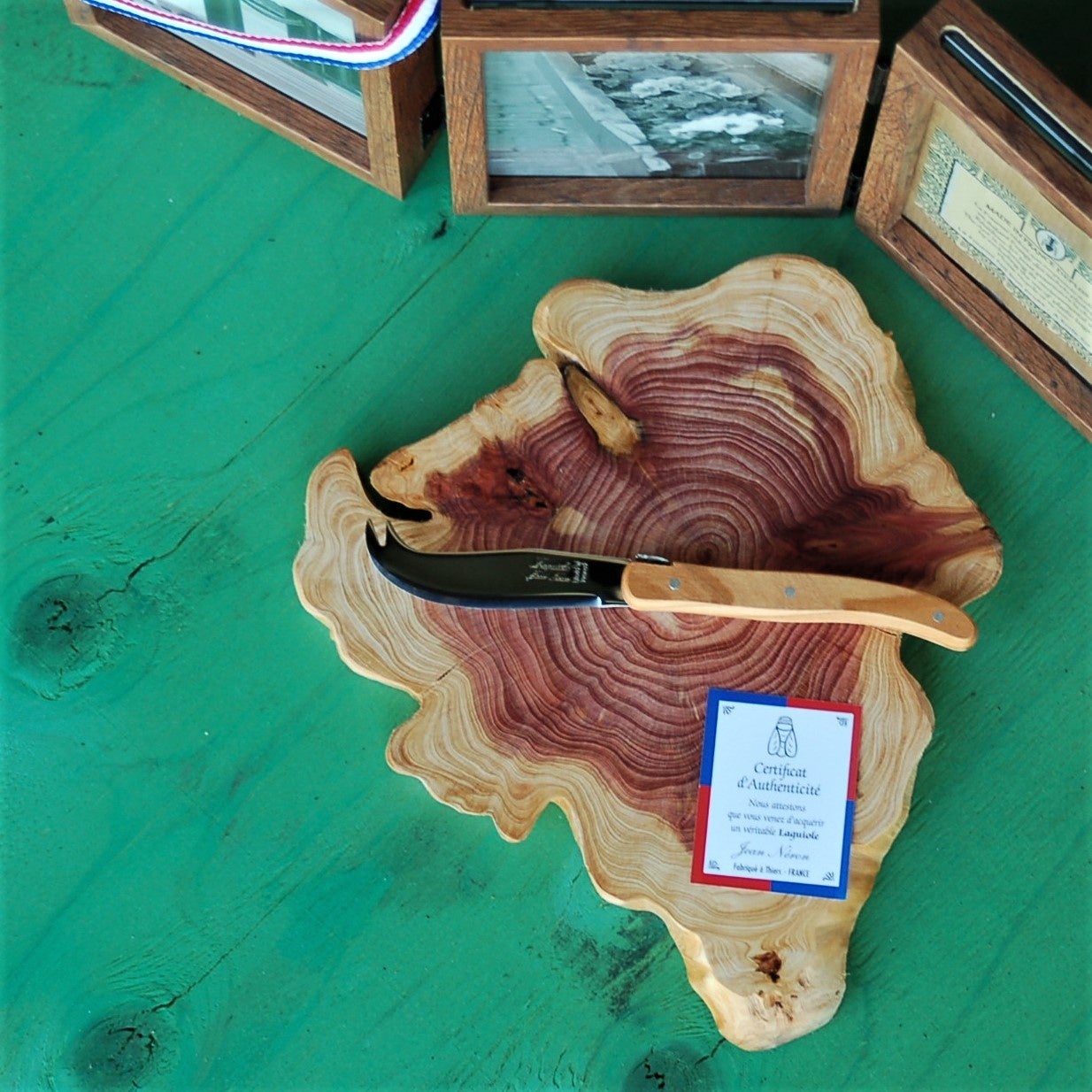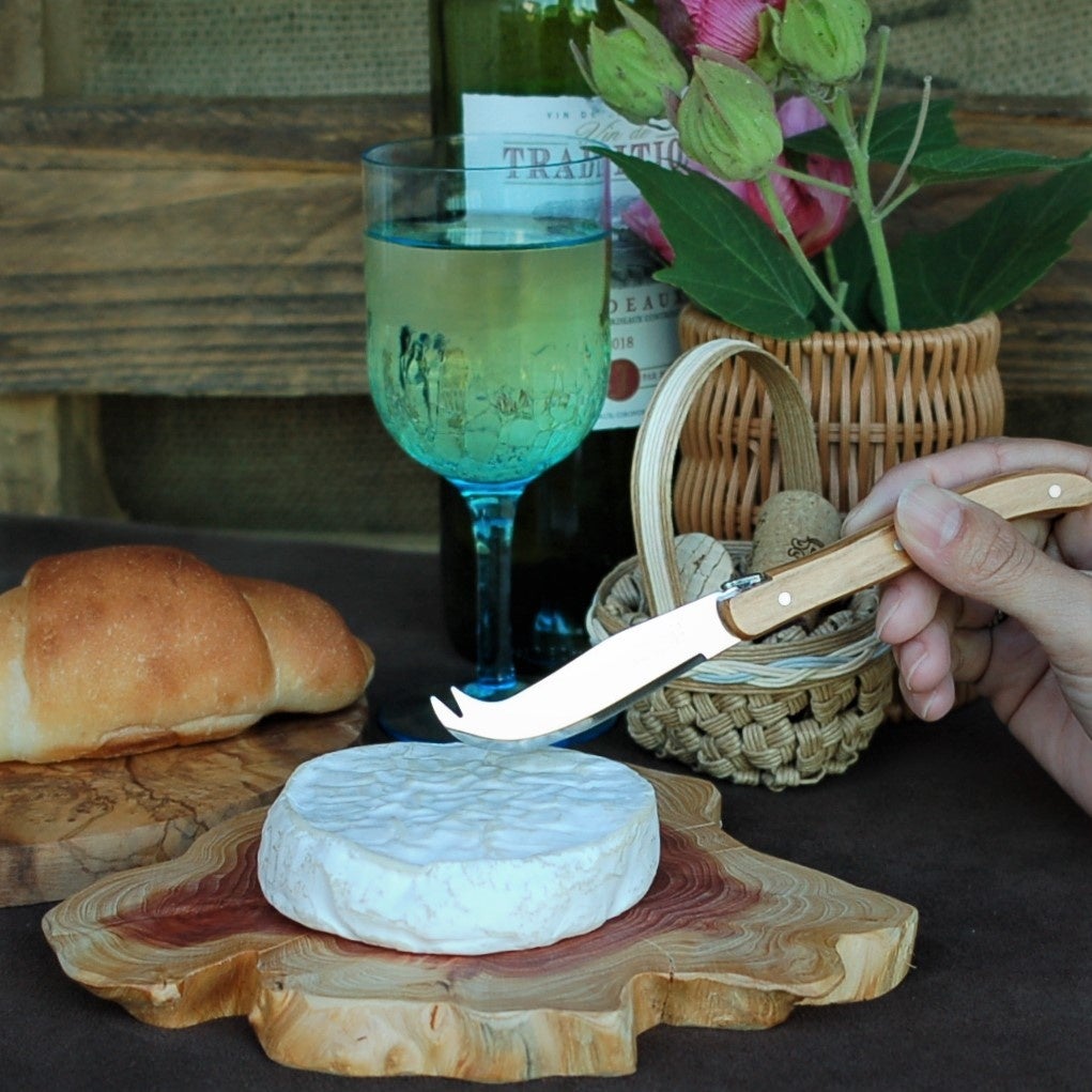 天然の造形と木目、香りを同時に楽しめる紀伊半島産イブキ材プレートと人気のミニ・チーズナイフをセットにしました