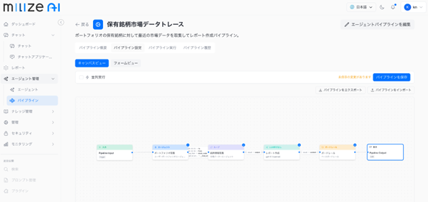 最大の特徴は、Difyやn8n*、LangChainといった異なる基盤で開発された既存のAIスキルやRAG(知識ベース)をそのまま流用し、単一プラットフォーム上で統合管理・制御できるオープンな設計にあります 。さらに、異なるエージェント同士を「パイプライン」として連結し、複雑な業務工程を自動化するアプリをプログラミング不要で迅速に構築可能です 。これにより、特定ベンダーへのロックインを回避し、過去の開発資産を有効活用しながら、金融機関水準の「多層ガードレール」による安全なAI導入とIT投資の最適化を同時に実現します 。