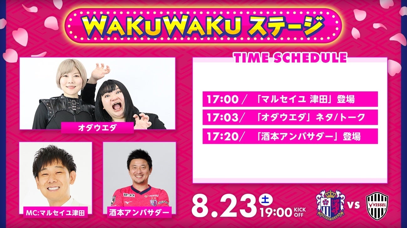 【セレッソ大阪】8/23(土)神戸戦 WAKUWAKUステージ開催!オダウエダ、マルセイユ 津田さんが登場!