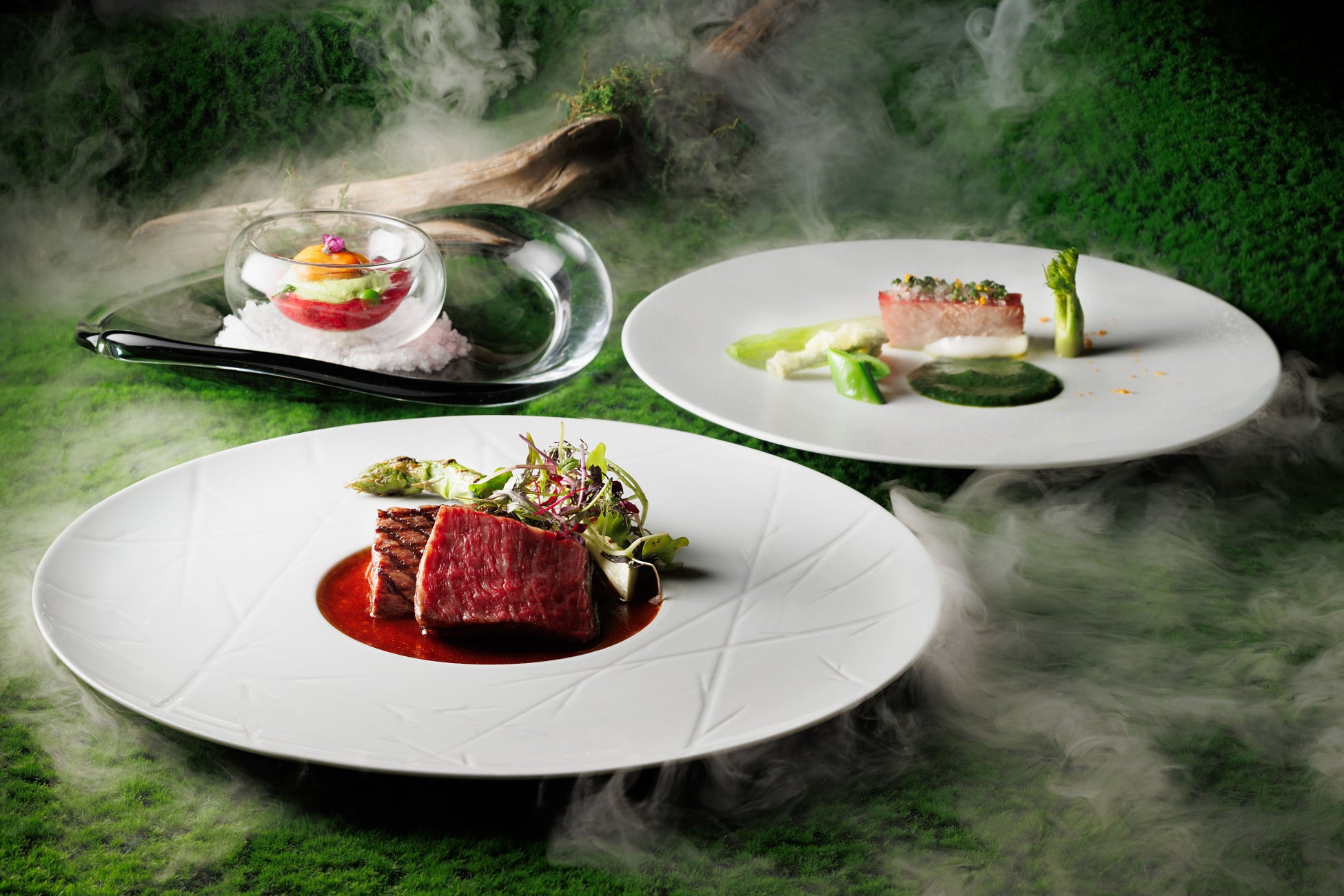 お肉は全て黒毛和牛のサシと赤身の絶妙なバランスを持つA3・A4ランクのみを使用しており、生・ロースト・グリエ・ラグーなど変幻自在に姿を変えて登場。 和と洋が交差するまさにジャンルのない、全く新しいフレンチをご提供しています。