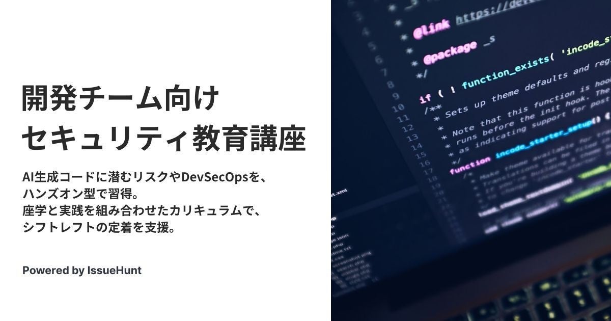 バグバウンティ、脆弱性診断、DevSecOpsを統合したサービス「IssueHunt One(https://issuehunt.jp/)」を提供するIssueHunt株式会社(本社:東京都中央区日本橋茅場町一丁目8番1号、代表取締役:横溝 一将)は、開発チーム向けセキュリティ教育講座「IssueHunt Academy」を本日より提供開始することをお知らせいたします。