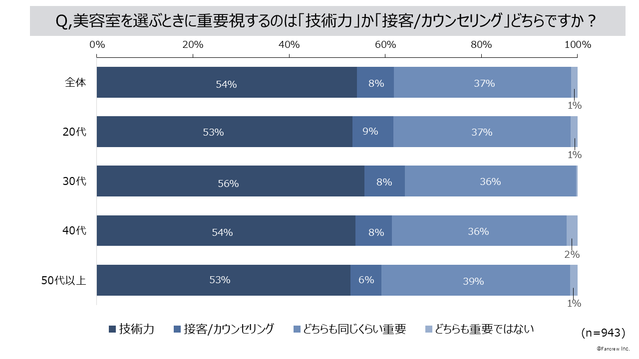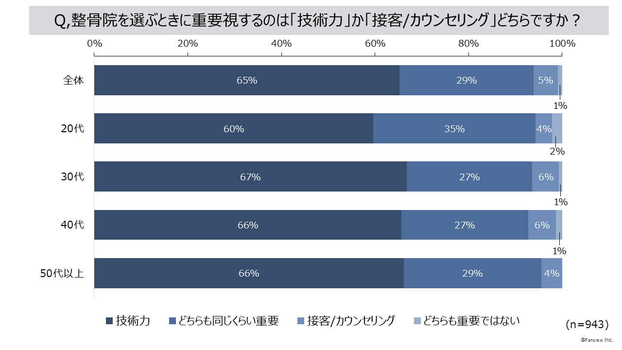 3.美容室、整骨院問わず店選びで「技術力」と「接客・カウンセリング」の双方が重要視されている