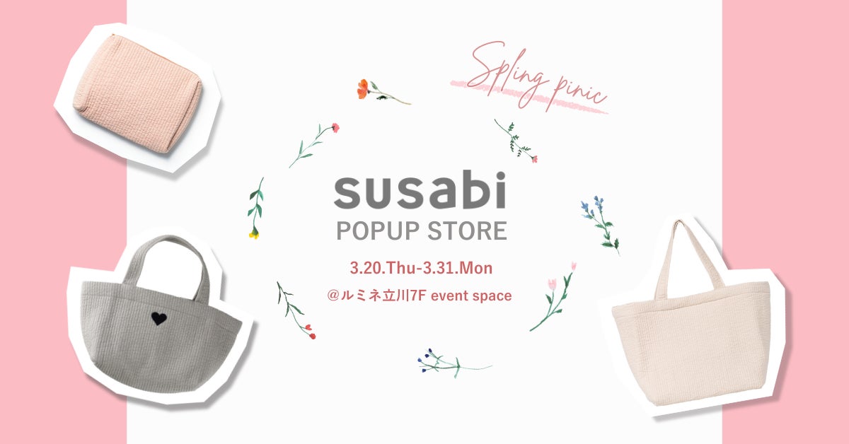 「心豊かなくらしを」提供する総合ライフスタイルショップsusabiは、2025年3月20日(木)〜2025年3月31日(月)ルミネ立川にて期間限定のポップアップストアをオープンいたします。