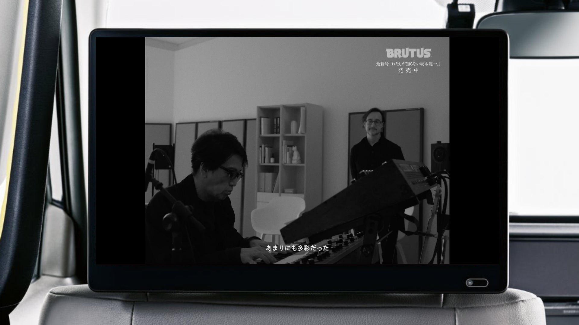 2024年12月16日にマガジンハウス・BRUTUSより、日本を代表する世界的アーティスト「坂本龍一」の創造の根源に迫った特別号「わたしが知らない坂本龍一。」が発売になり、発売を記念した特別企画に、モビリティ車窓メディア「Canvas」が採用されました。本タクシーでは、タクシーの車窓に特別号のビジュアルが掲出されるほか、シンガーソングライターの岡村靖幸さんが、坂本さんの機材を演奏する約16分間のスペシャル映像を放映します。