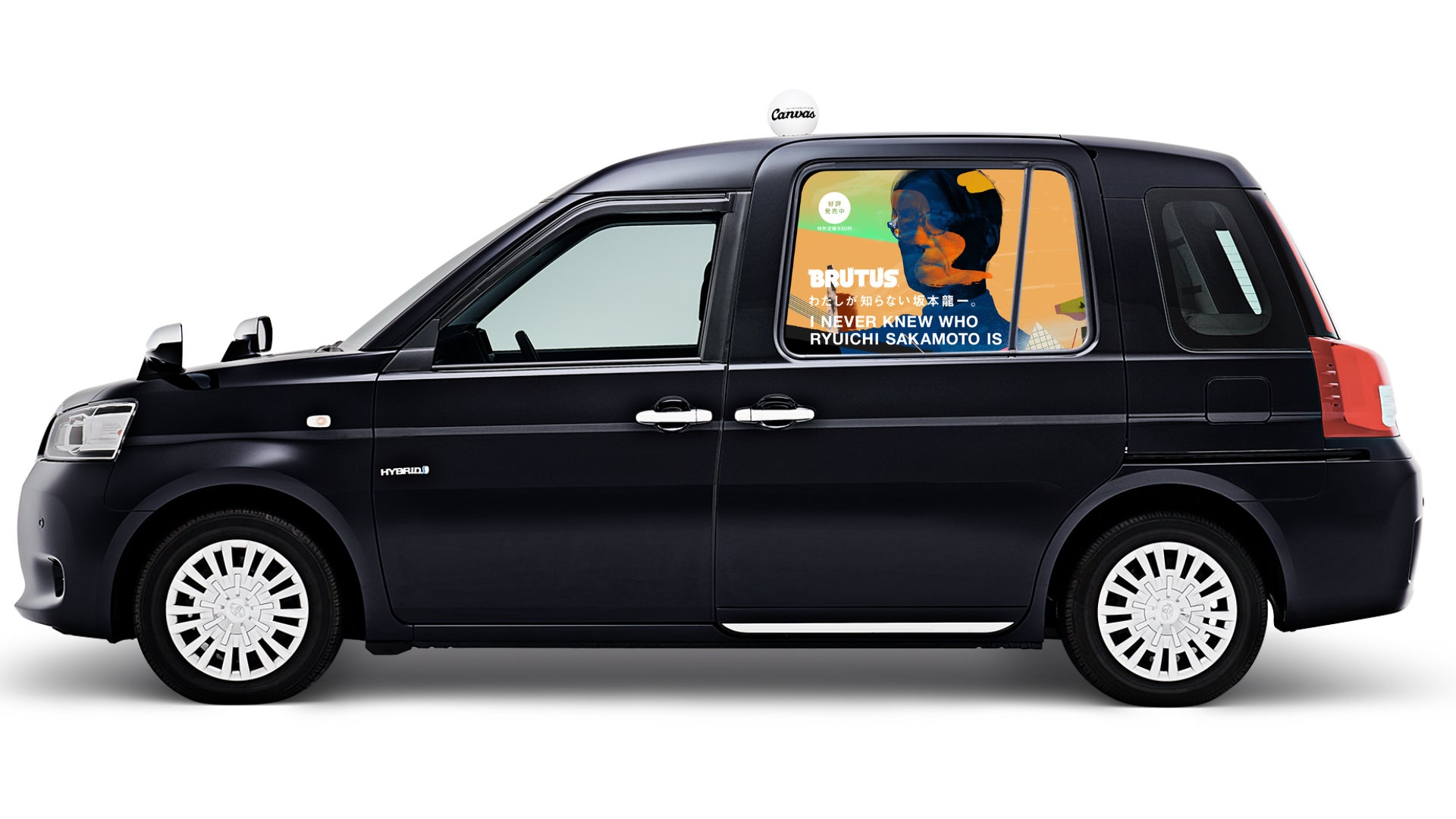 【Canvas×BRUTUS】年始の特別企画、坂本龍一の創造に迫った特別号「わたしが知らない坂本龍一。」コラボタクシーが期間限定で走行