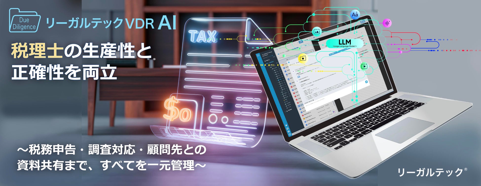 リーガルテック社、税理士業務に革新をもたらす「AI × VDR」ソリューションが登場「リーガルテックVDR」にLLM生成AI「AI孔明」を統合、税務・会計業務の生産性と正確性を両立