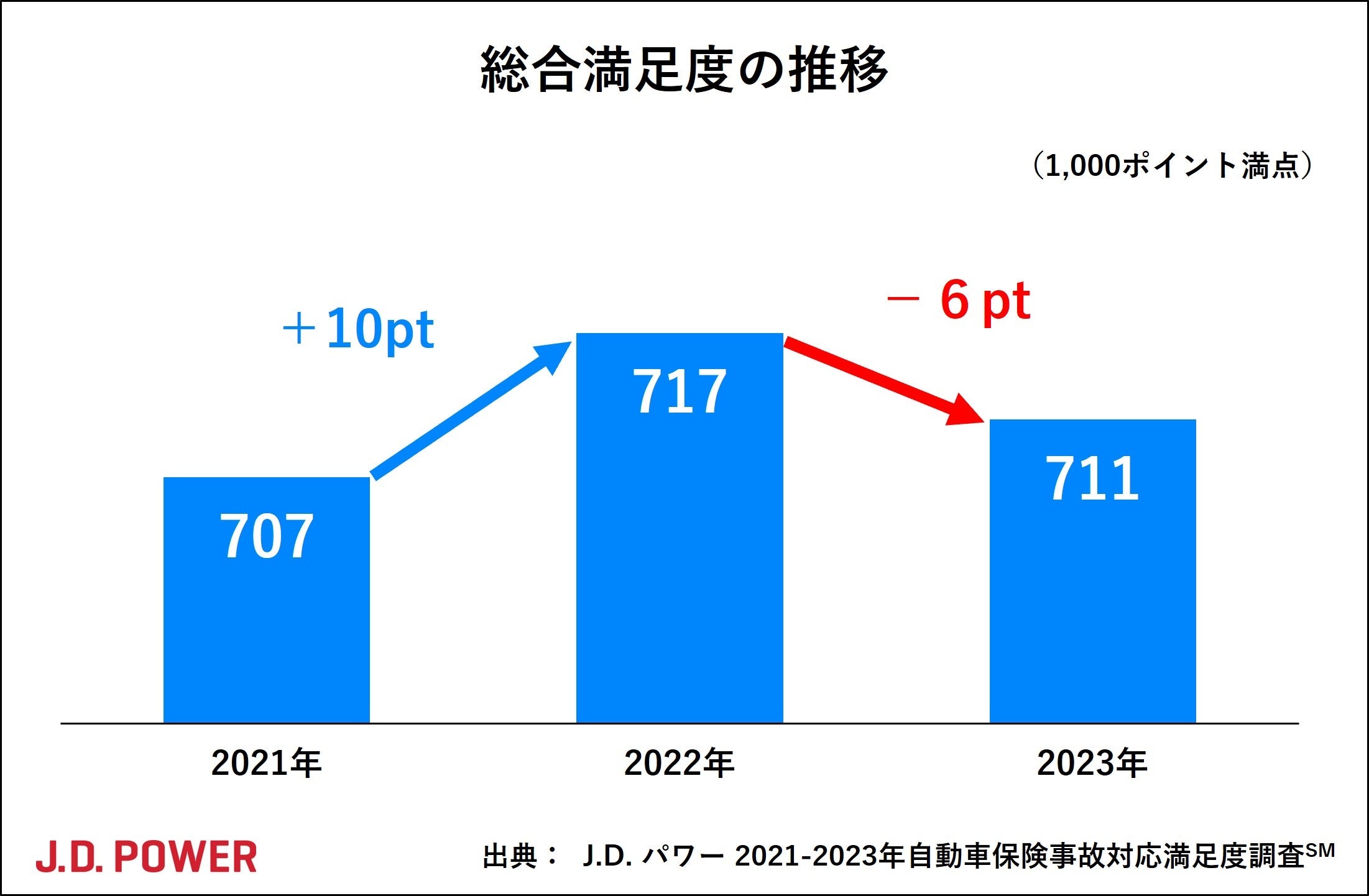 本年調査の総合満足度は、前年調査(2022年11月発表)の過去最高値の更新から一転し、前年比-6ポイントの711ポイント(1,000ポイント満点)となった。