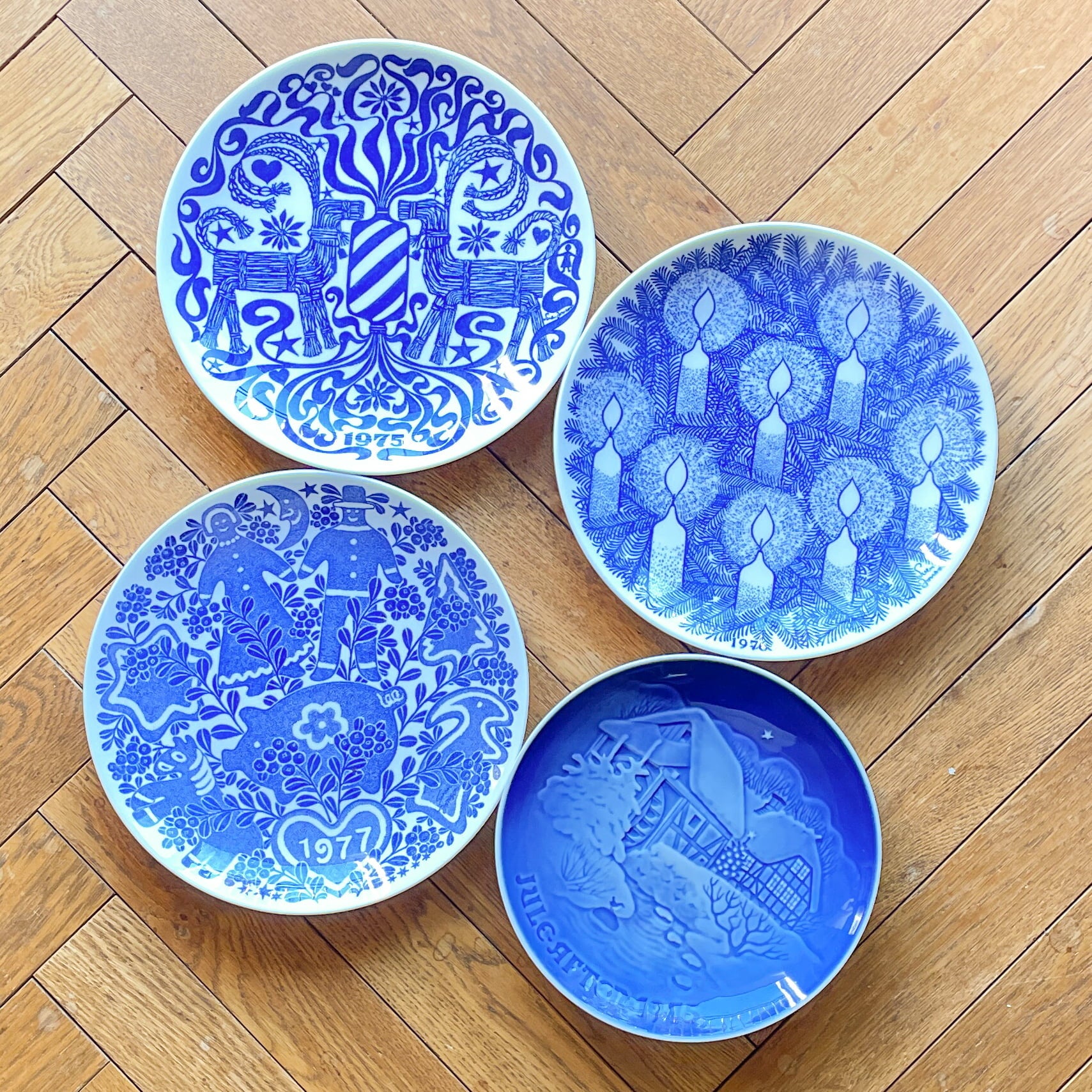 「秋の買い付けでは、クリスマスのために作られた特別なヴィンテージアイテムがみつかるんです」と、おさださん。今回はブルーで色付けされたクリスマスプレートを発掘したそうです。