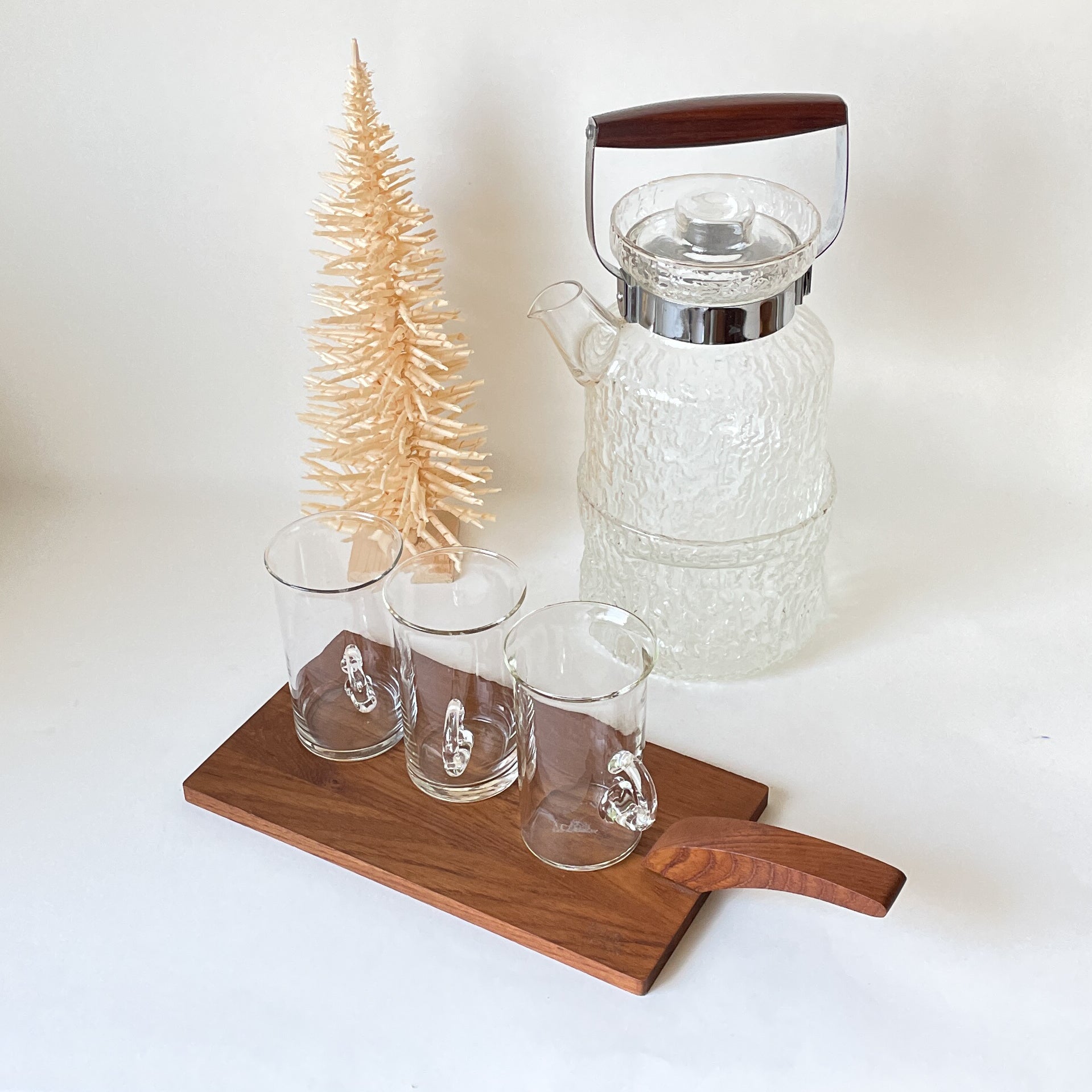 スウェーデンではお茶の時間を「フィーカ」といい、1日に何度もフィーカを楽しむのだそうです。「ポットをキャンドルで温めながら高温を保たせるセットものなどに、いろんなデザインがあります。また耐熱ガラスのティーカップも古くから親しまれていて、馴染みのあるアイテムです」