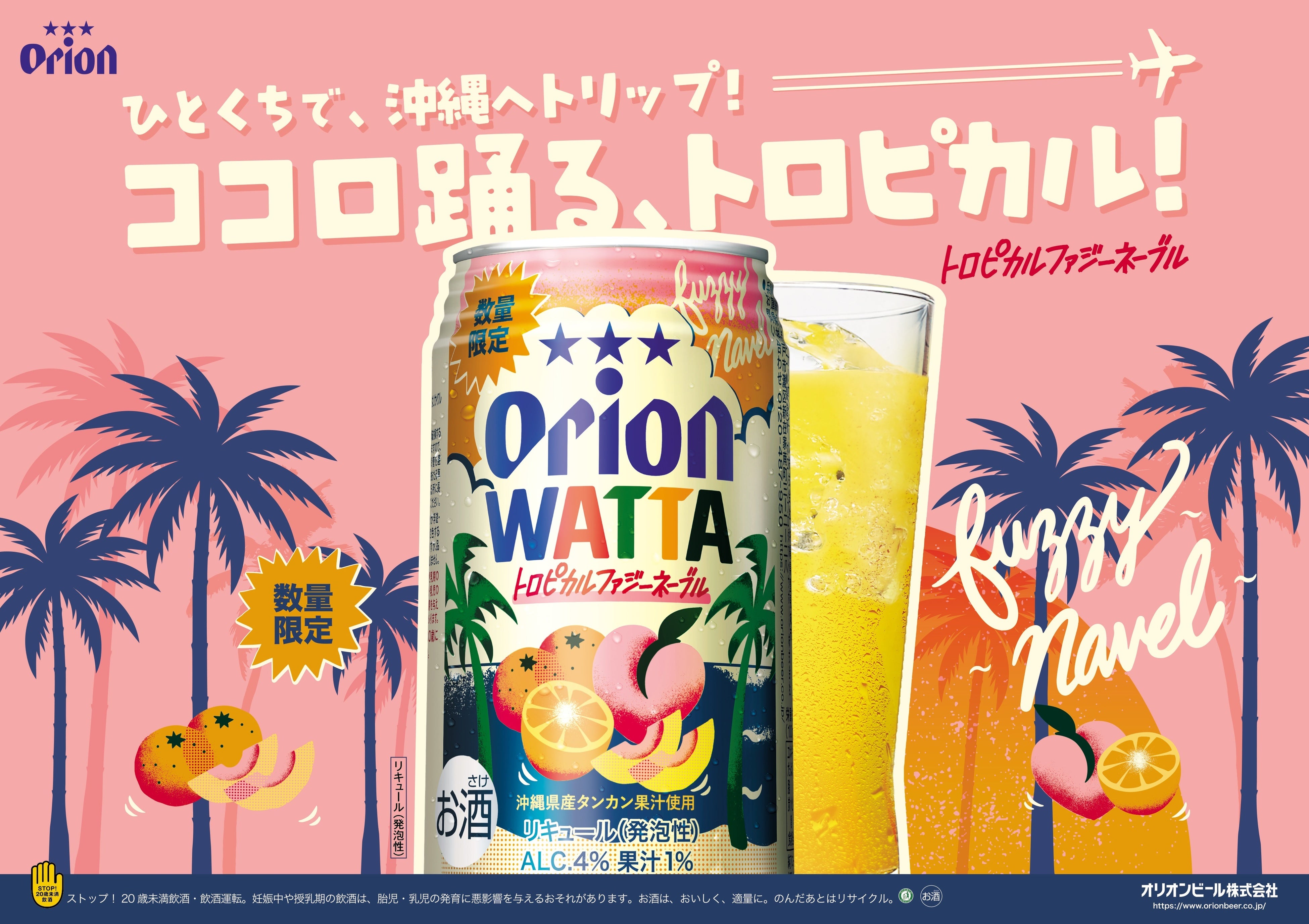 沖縄の太陽を感じる爽やかな味わい「WATTA トロピカルファジーネーブル」で、トロピカルな気分をお楽しみください。