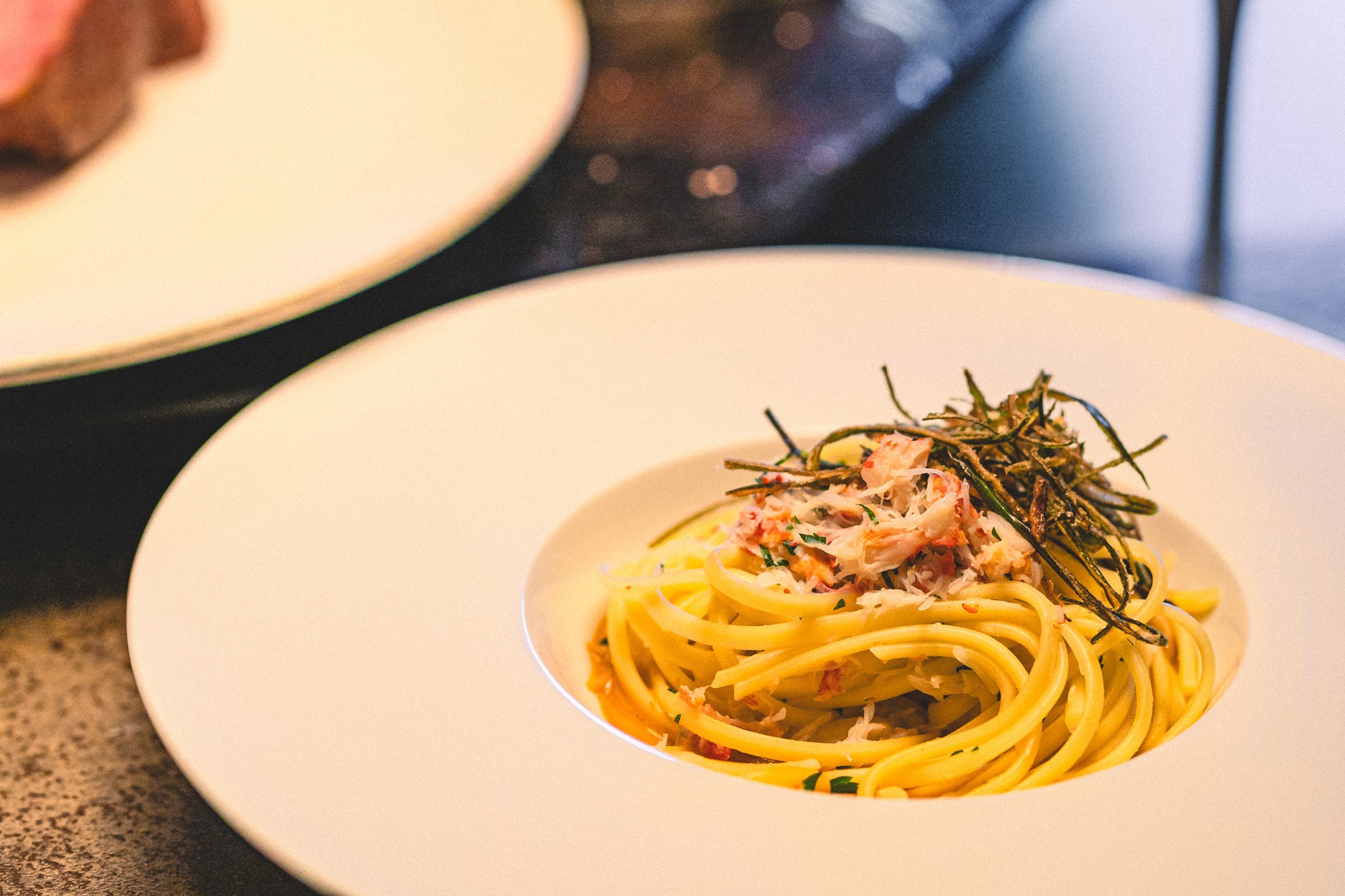 パスタには、濃厚なアメリケーヌソースの「ズワイ蟹のリングイネ」をご用意しました。