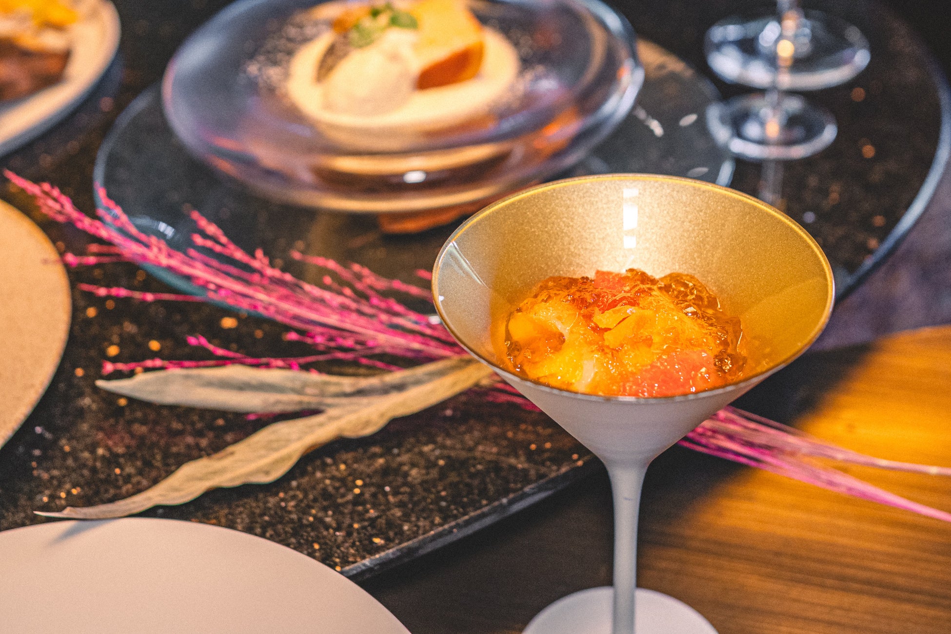 これまでにご提供したカクテルには、蘭の香りを纏った一杯、ウニの旨味を閉じ込めた一杯、山椒のジェラートをアクセントにした一杯など、他では味わえない個性豊かなテイストが並びます。細部までこだわり抜いたカクテルペアリングを、ぜひお楽しみください。