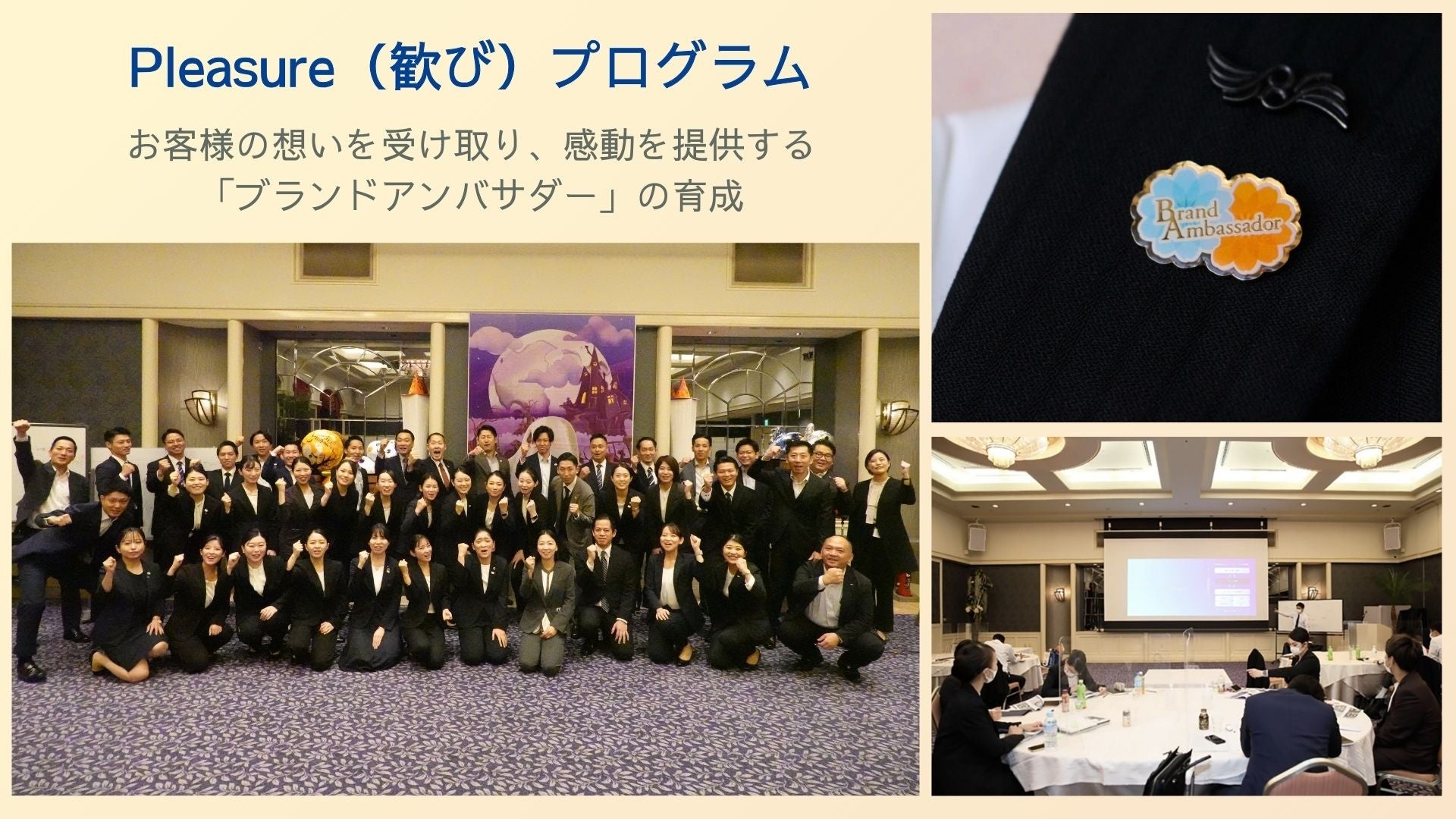 「Pleasureプログラム」は、「Your Pleasure is Our Pleasure(お客様の喜びは、私たちの歓びです)」という合言葉のもと、経営理念の浸透から質の高いパーソナライズドサービス、そして当社ならではのユニークなブランド体験の提供まで、8つの人財開発プログラムで構成されています。体系的なトレーニングを修了したスタッフにはライセンスを付与し、お客様へ一貫して高品質なサービスを提供できる体制を強化してまいりました。これまでに、ホテル部門の3,000名を超えるスタッフが「Pleasureプログラム」を受講し、その中で、リーダーライセンス取得者は258名に達しています。(2025年6月末現在)そして、当社ホテルの顧客満足度の向上、ホテルスタッフの退職率の低下、エンゲージメント指数の向上、自己学習時間の増加、昇格スピードの短縮などの成果が現れています。