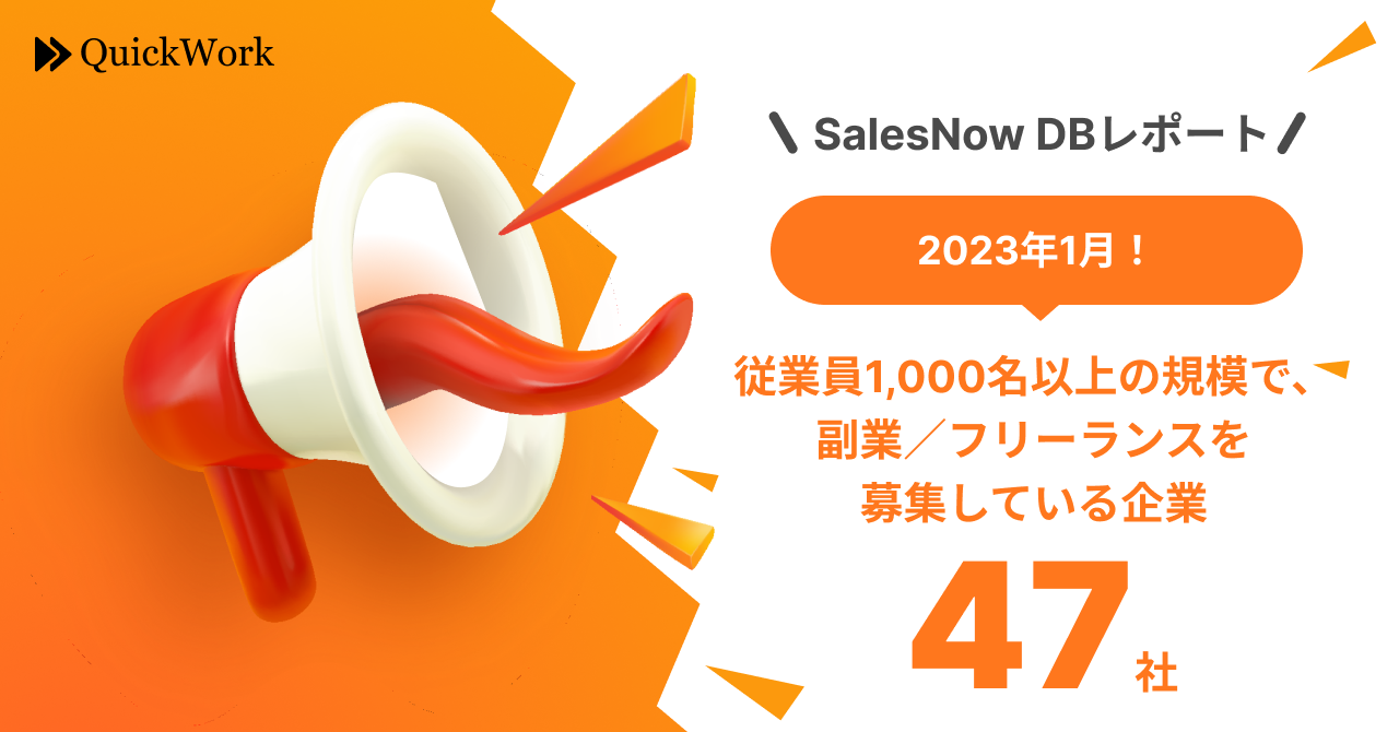 2023年1月!従業員1,000名以上の規模で、副業/フリーランスを募集している企業47社/SalesNow DBレポート