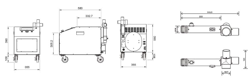 空冷方式を採用したキャスター付きのコンパクトボディにより、優れた可搬性を実現しています。