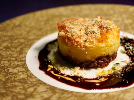 試食配布会場となる、日本酒プレミアムラウンジ「一献風月 by PERIE CHIBA」の提供による参考料理。キョン肉に、千葉県産ちぢみほうれん草とさつまいも(紅はるか)、房総レモンを組み合わせた千葉県の旬の味覚が楽しめるキッシュ。