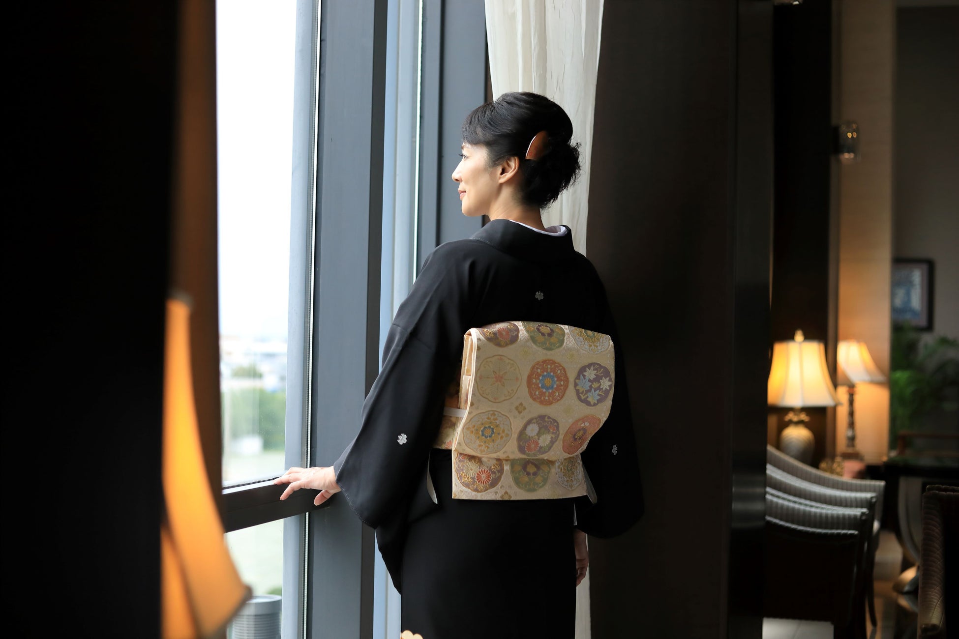 黒は格調高く、気品あふれる装いに見せてくれる色です。染めの中で、黒は千差万別の色相が味わい深い贅沢な色。日本では黒に対する意識も高く、水墨画では「墨は五彩を兼ねる」と言われ、黒一色の中に多彩な色調を見る独特の感性を持っています。