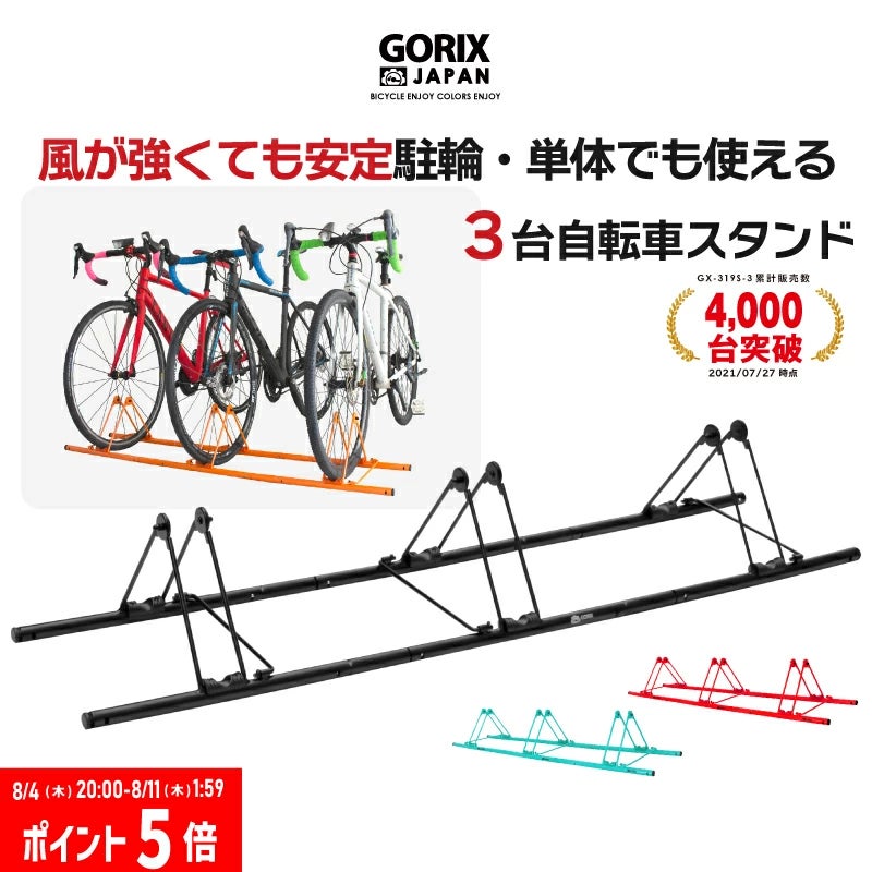 タイヤ直径12~29インチ&幅6cmまで対応の3台自転車スタンド GX-319S-3