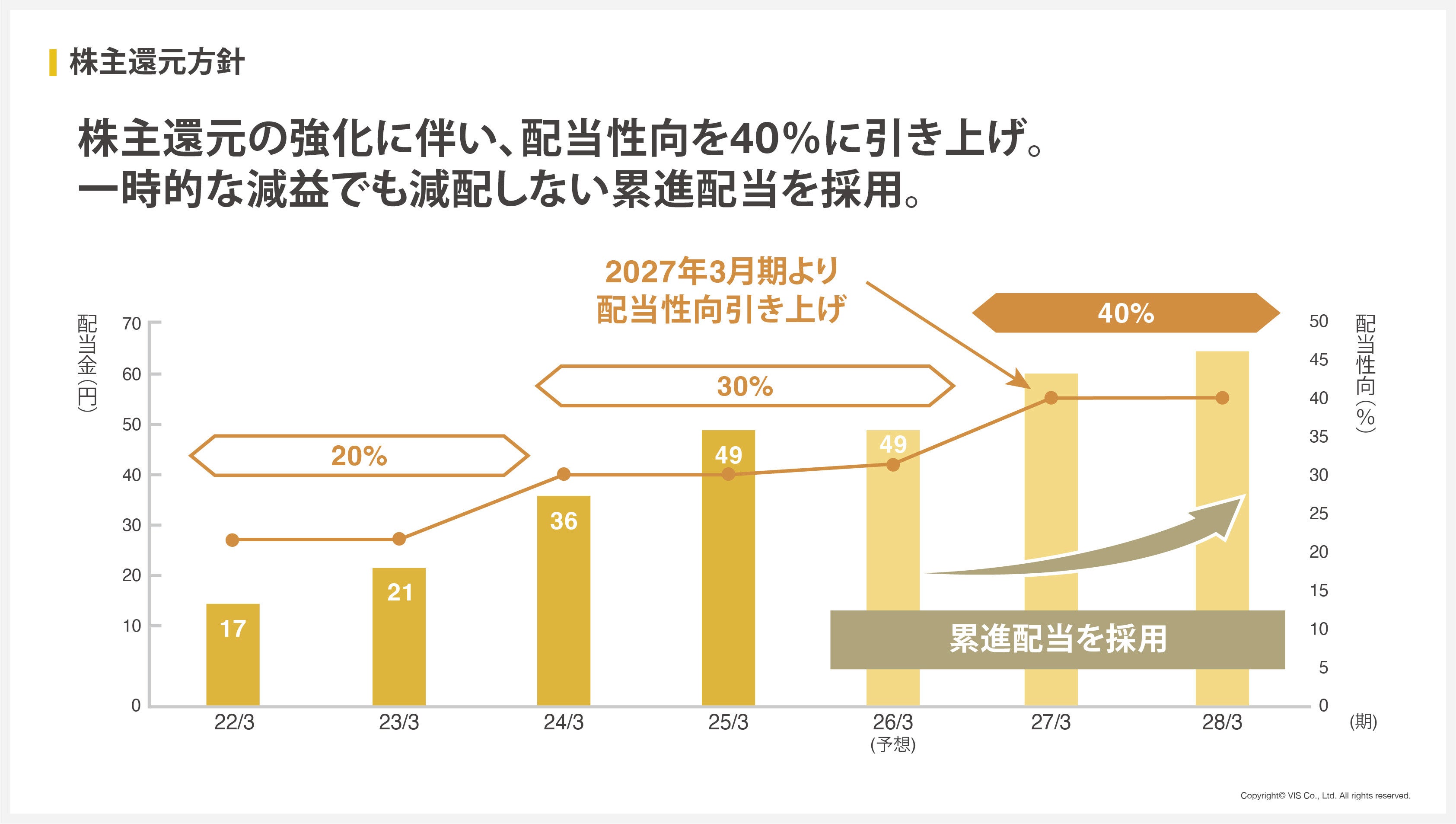 さらに、2027年3月期からは配当性向を30%から40%へ引き上げ、株主価値の一層の向上を図ってまいります。