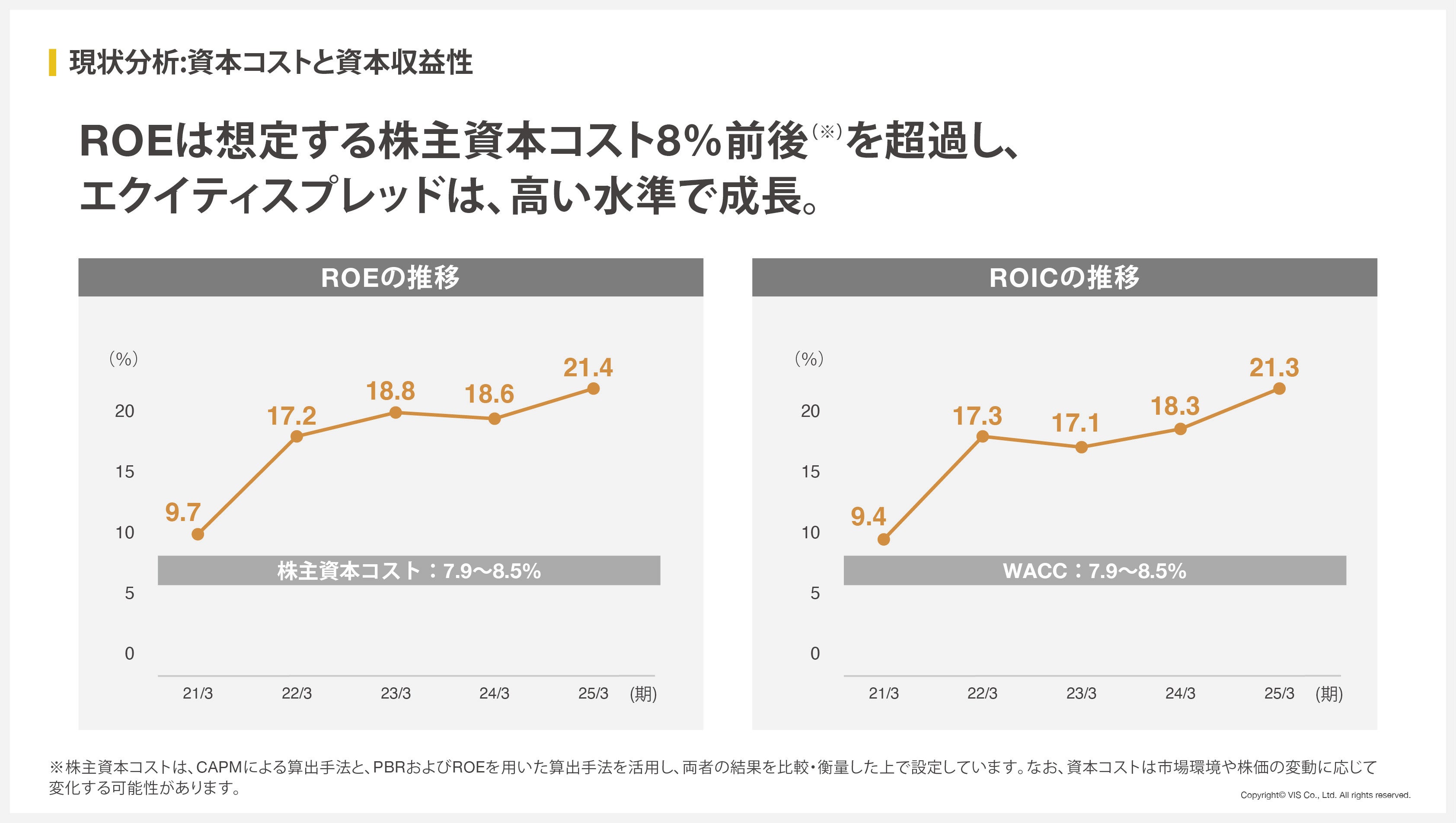 ※株主資本コストは、CAPMによる算出手法と、PBRおよびROEを用いた算出手法を活用し、両者の結果を比較・衡量した上で設定しています。