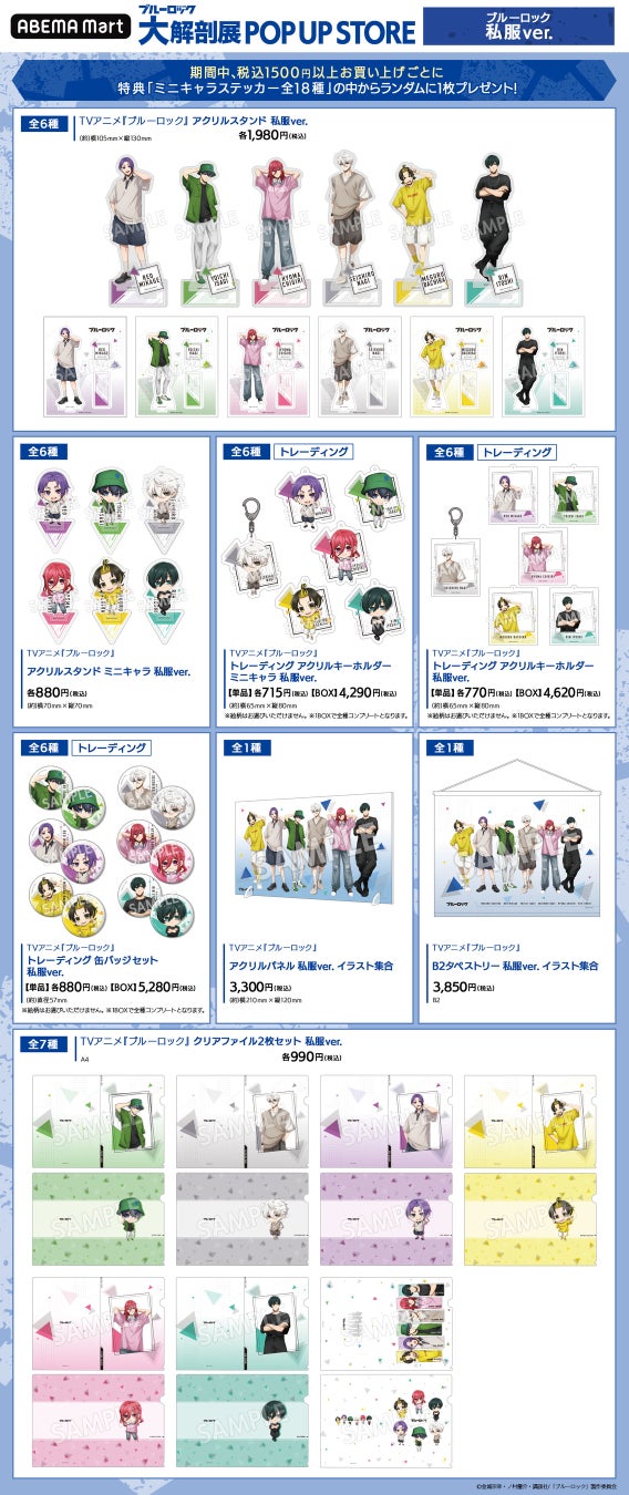 ※『ブルーロック 大解剖展 POP UP STORE』にて、税込1,500円以上を購入した方に、ミニキャラステッカー全18種の中からランダムで1枚をプレゼント!