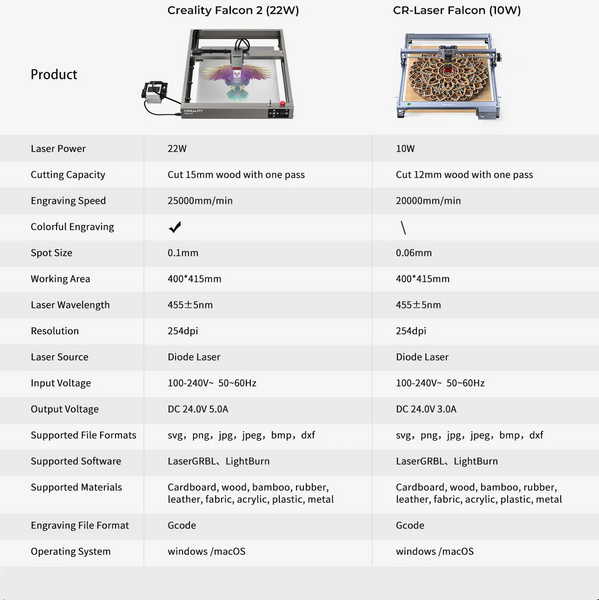 2023年、彫刻機の新品として今市販している商品性能の基本上には開発・革新されたCreality Falcon2 22W彫刻機は登場し、xTool D1 Pro 20Wレーザー彫刻機に匹敵し、さらにはxTool D1 Pro 20Wレーザー彫刻機の性能を超えましたので、印刷断面もより焦げ目が少なく、薄い仕上がりになります。