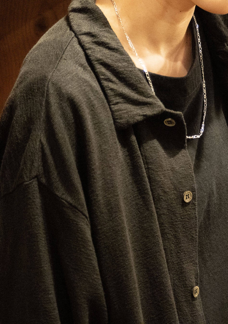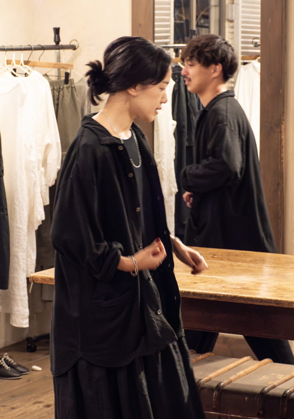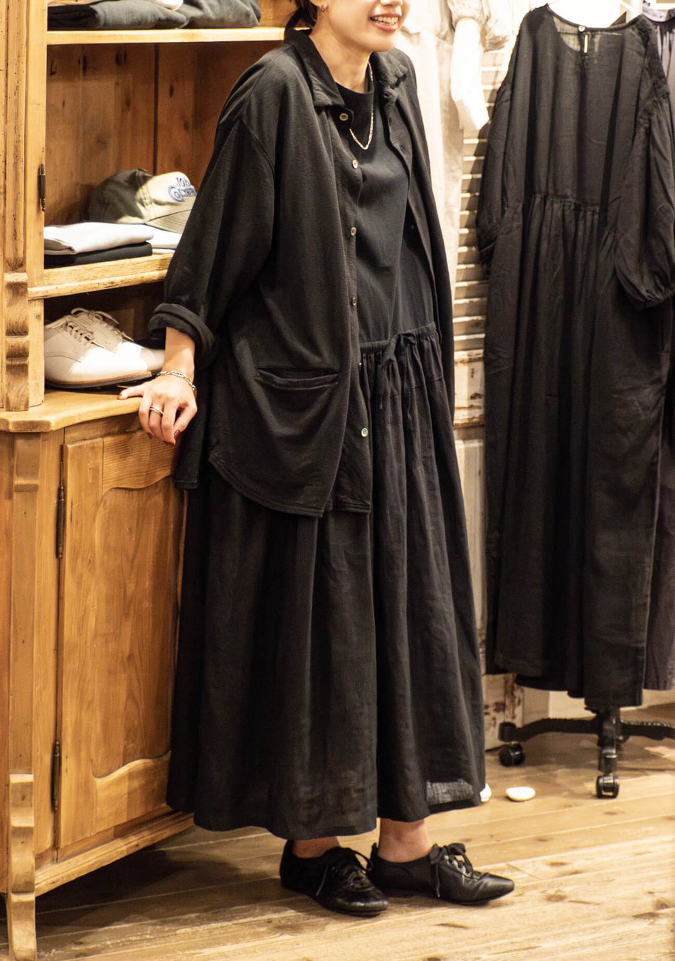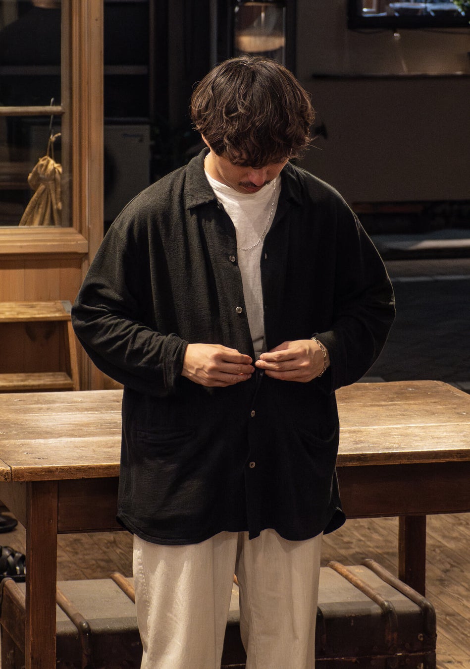 流れるドレープとリネンならでは艶が魅力のリネンインレーのシャツカーディガンとイージーパンツを発売します。肌離れの良い、ドライかつしなやかな生地をご体感いただきたい。